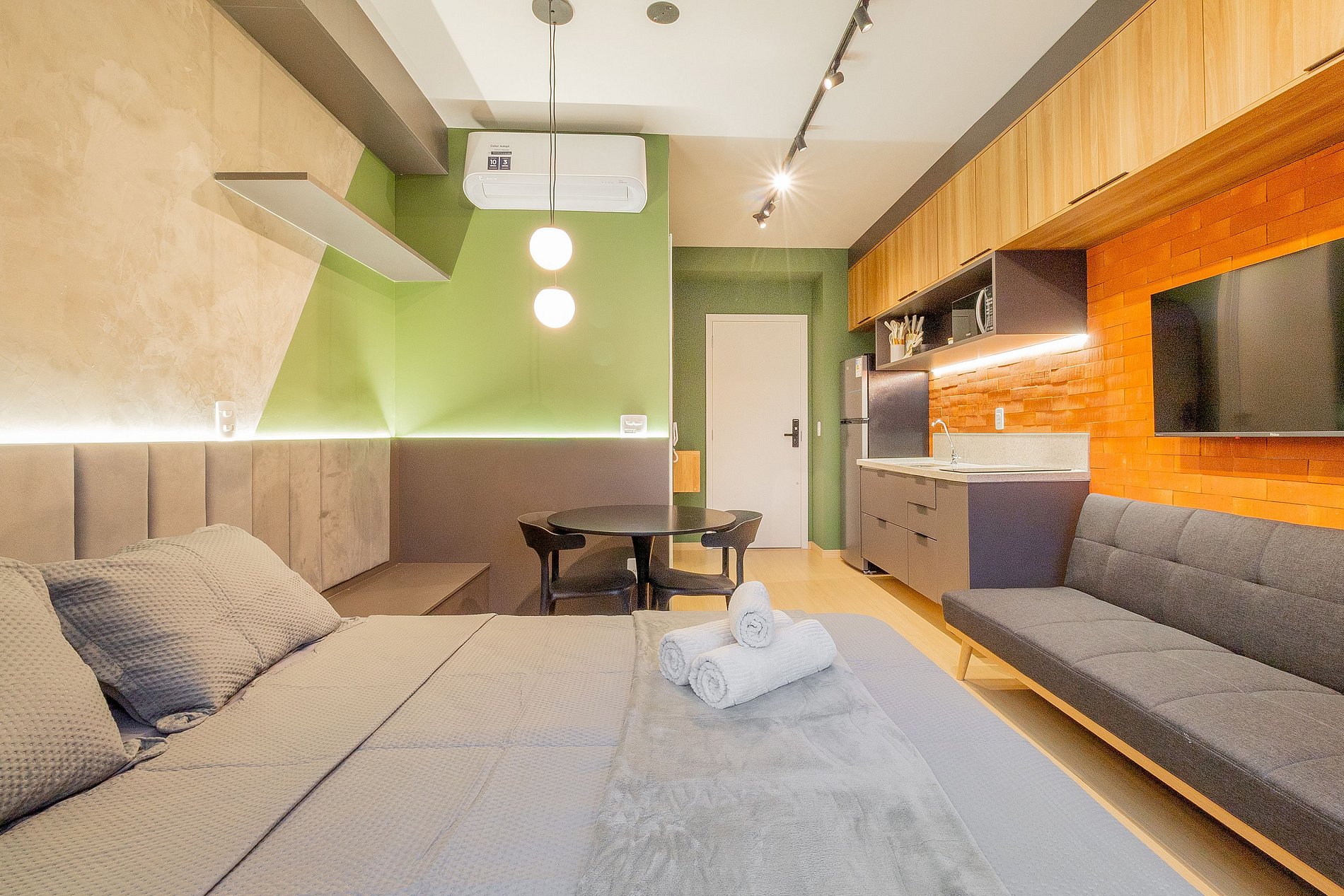 With contemporary decor, the space combines functionality and style, making it ideal for both short and long stays. Our studio provides everything you need for a memorable experience in Pinheiros, São Paulo, at Rua Cláudio Soares 101, one of the city's most exclusive addresses.