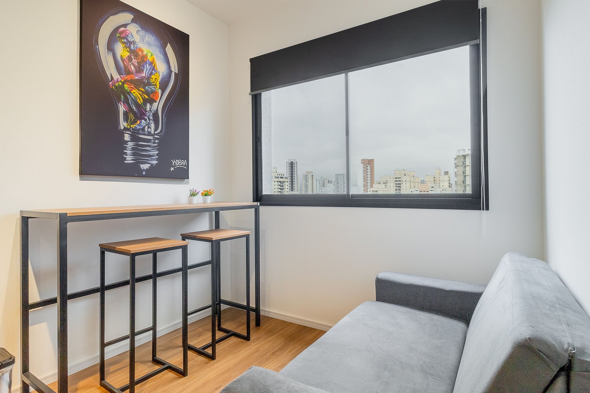Modern and functional studio located in Viva Benx Faria Pompéia, ideal for those seeking convenience and mobility in the West Zone of São Paulo. The apartment offers a comfortable, well-lit environment designed for both short and long stays, with a space perfect for both relaxation and remote work.