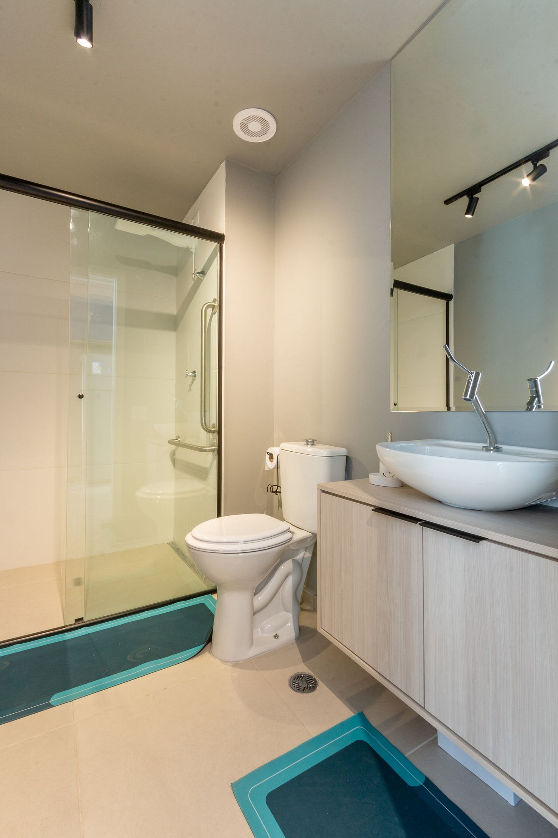 Modern Bathroom: Includes a high-pressure shower, towels, and toiletries.