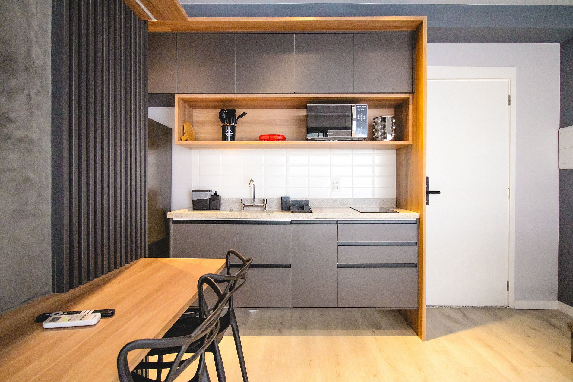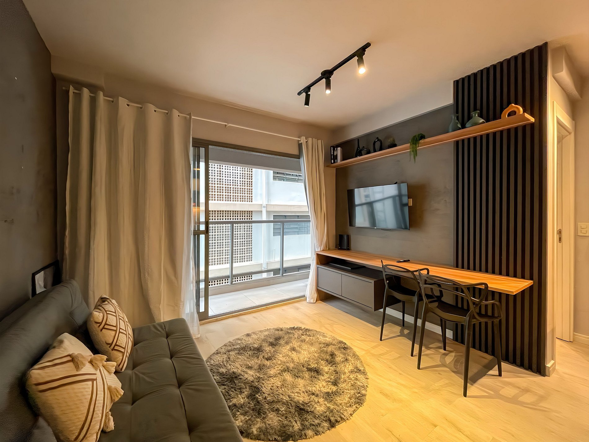 Urban retreat in the heart of Jardim Paulista, São Paulo. This modern studio comfortably accommodates up to 3 guests and is perfect for exploring the city. Enjoy a balcony with a view, a fully equipped kitchen, and access to a rooftop pool and gym. Just steps from Paulista Avenue and the subway, it offers the ideal combination of comfort and prime location for an unforgettable stay.