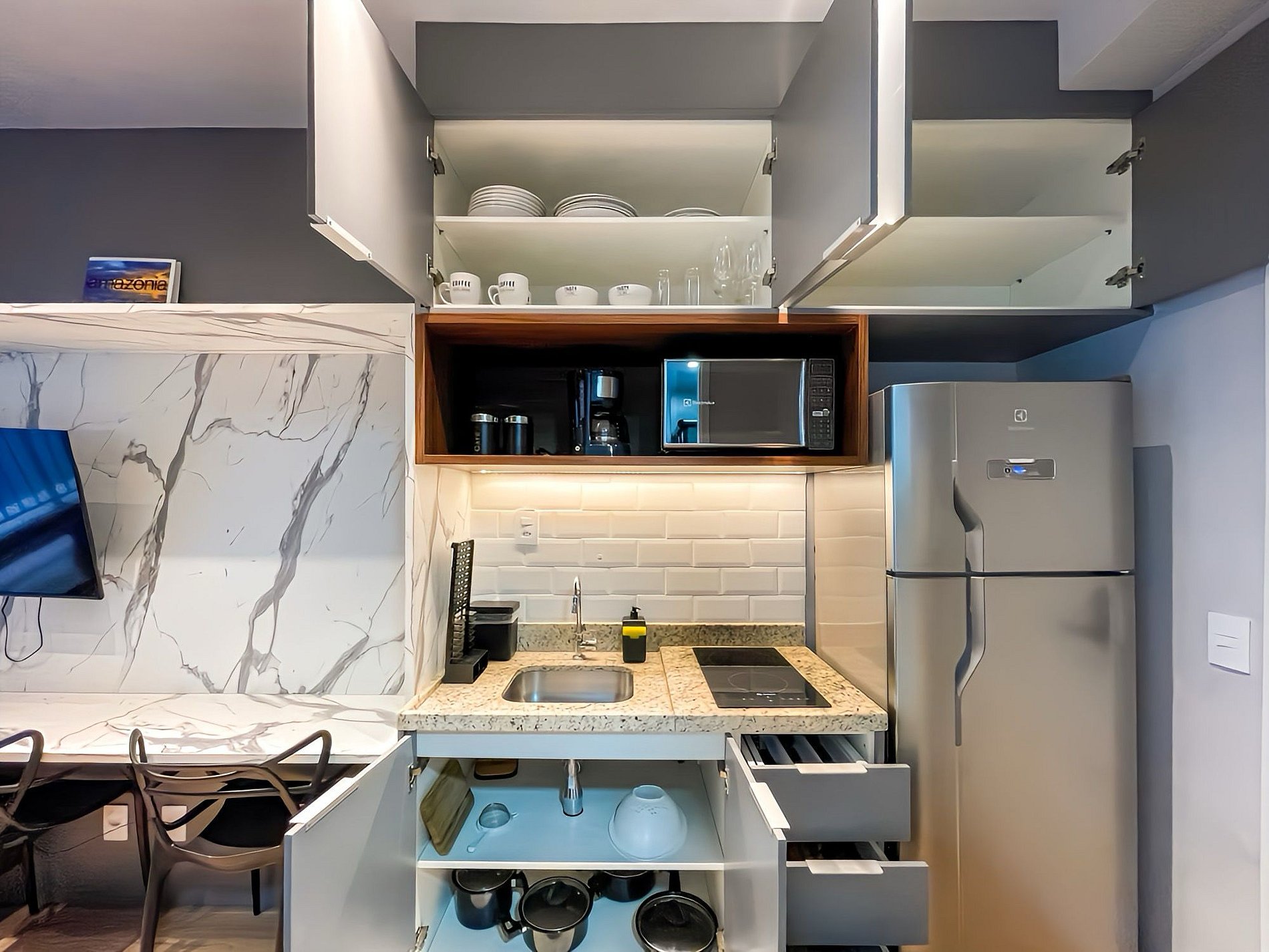 The apartments are complete and accommodate 3 people, ensuring a comfortable and practical stay. With a privileged location, Think Home places you in the heart of Higienópolis, close to everything São Paulo has to offer.