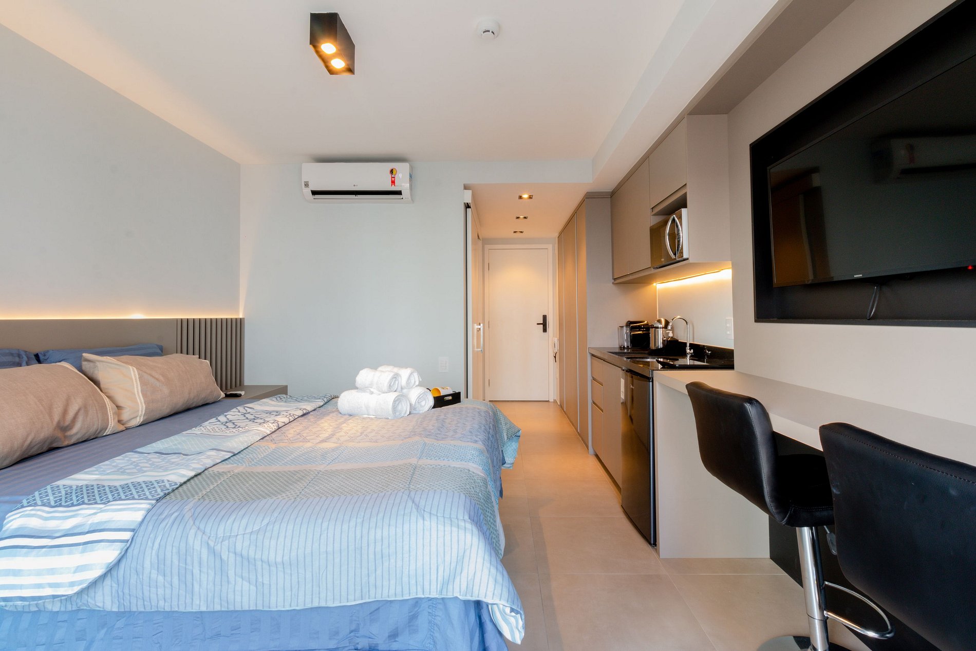 With contemporary decor, the environment combines functionality and style, making it ideal for short and long stays. Our Studio has all the support you need to spend incredible days at Consolação, SÃO PAULO, Rua Bela Cintra 237, one of the most noble addresses in São Paulo.