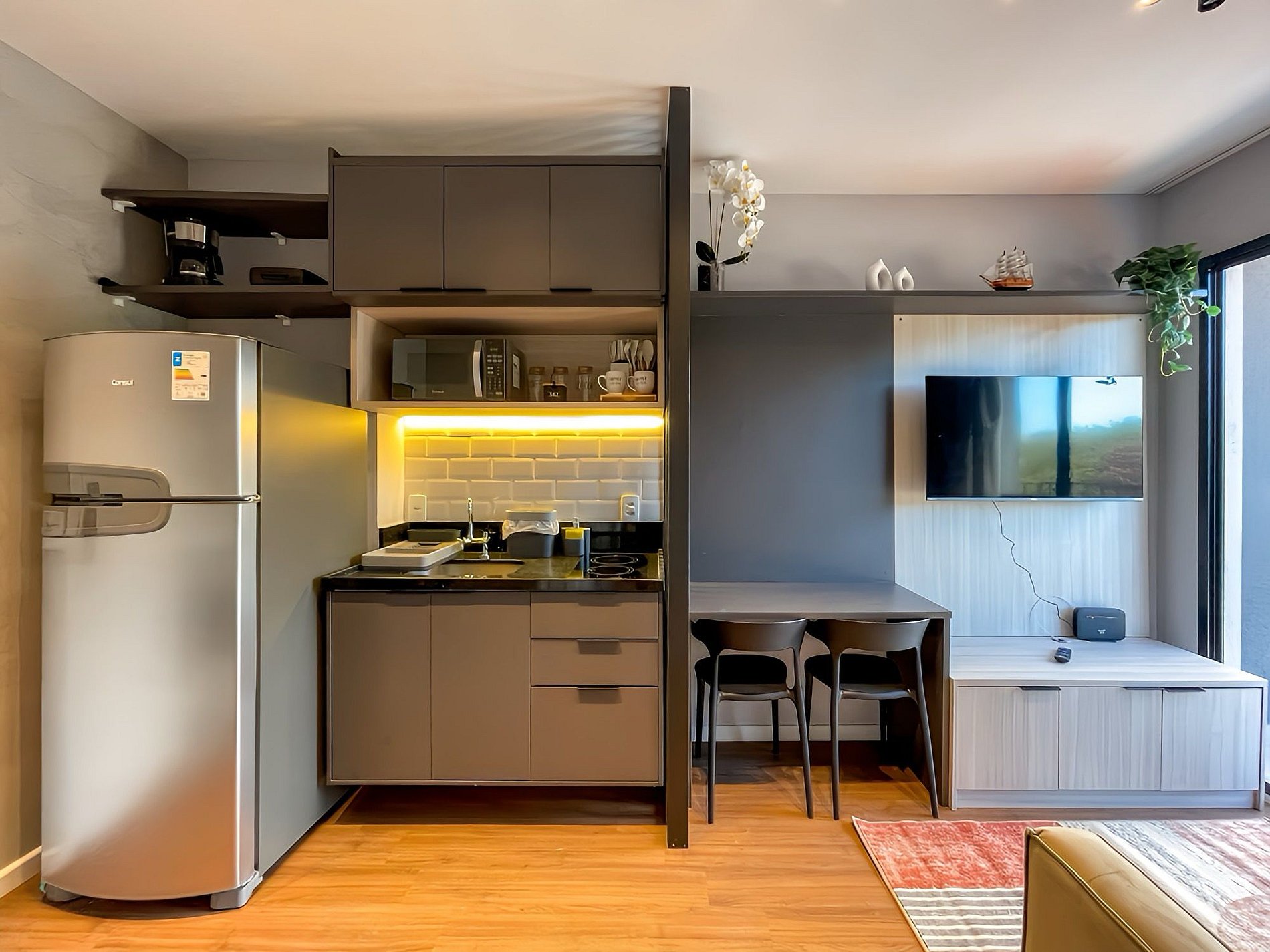 Featuring contemporary decor, the space blends functionality and style, making it ideal for both short and long stays. Our studio provides everything you need to enjoy a wonderful stay in Vila Olímpia, São Paulo, at Rua Alvorada 616, one of the city's most exclusive addresses.