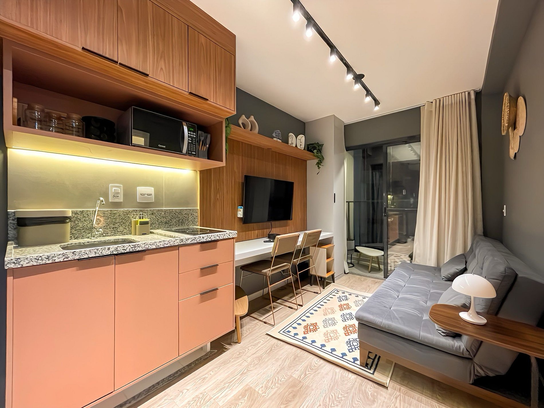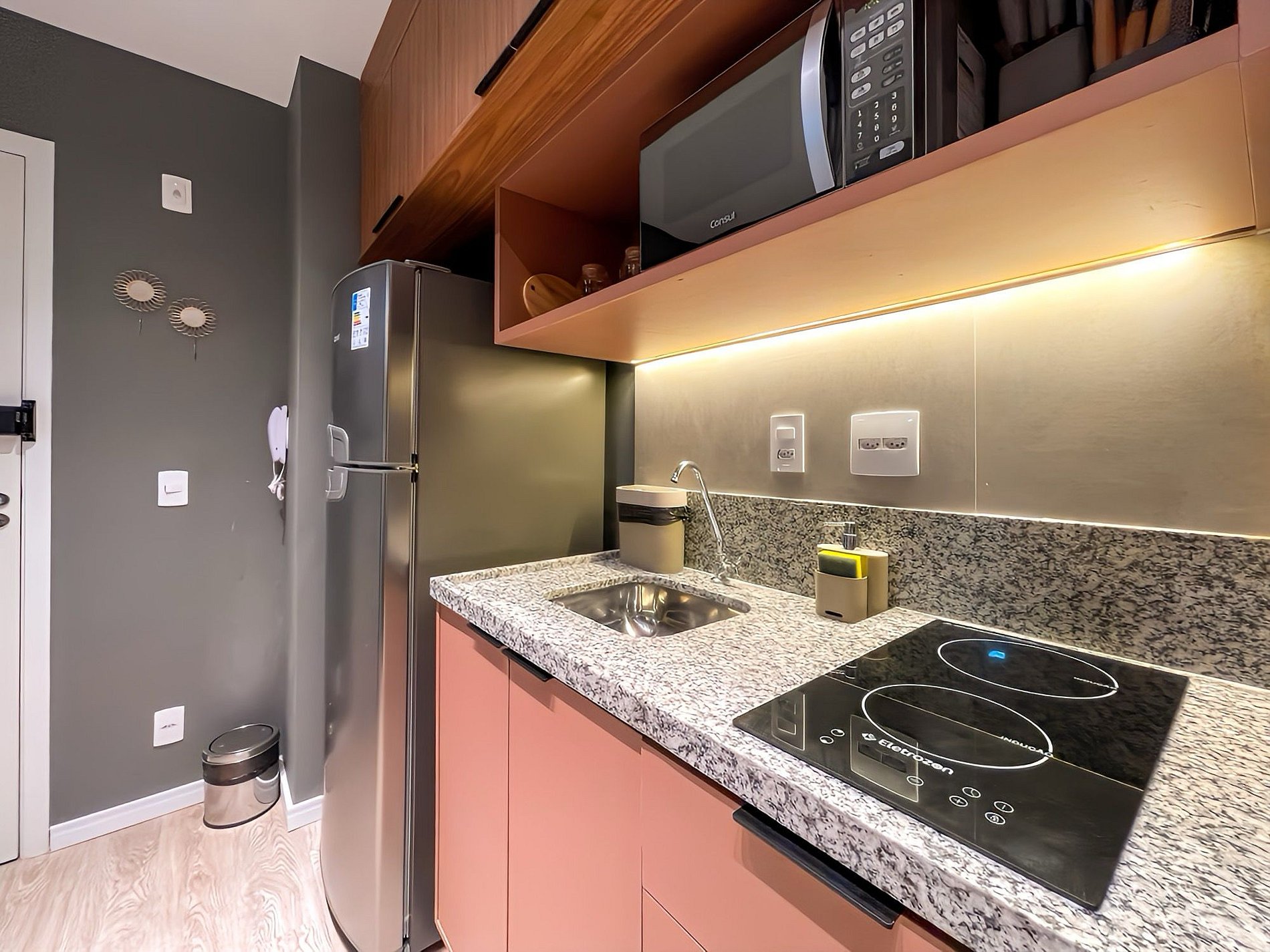 Featuring contemporary decor, the space seamlessly blends functionality and style, making it perfect for both short and extended stays. Our studio offers everything you need to enjoy an incredible experience in Pinheiros, São Paulo, at R. Potiguar Medeiros 67—one of the city's most exclusive addresses.