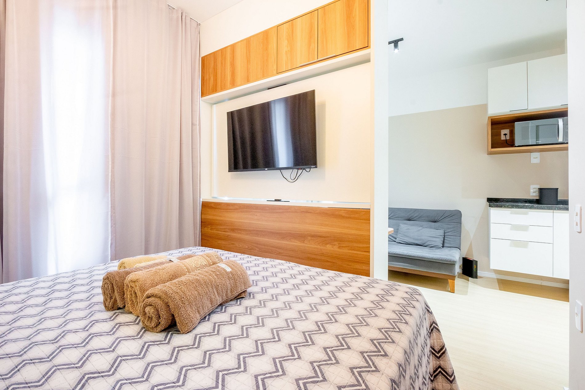 Estudio cuidadosamente diseñado para ofrecer comodidad y funcionalidad. Con una decoración contemporánea, el ambiente es luminoso y acogedor, ideal para relajarse después de un día descubriendo la ciudad.