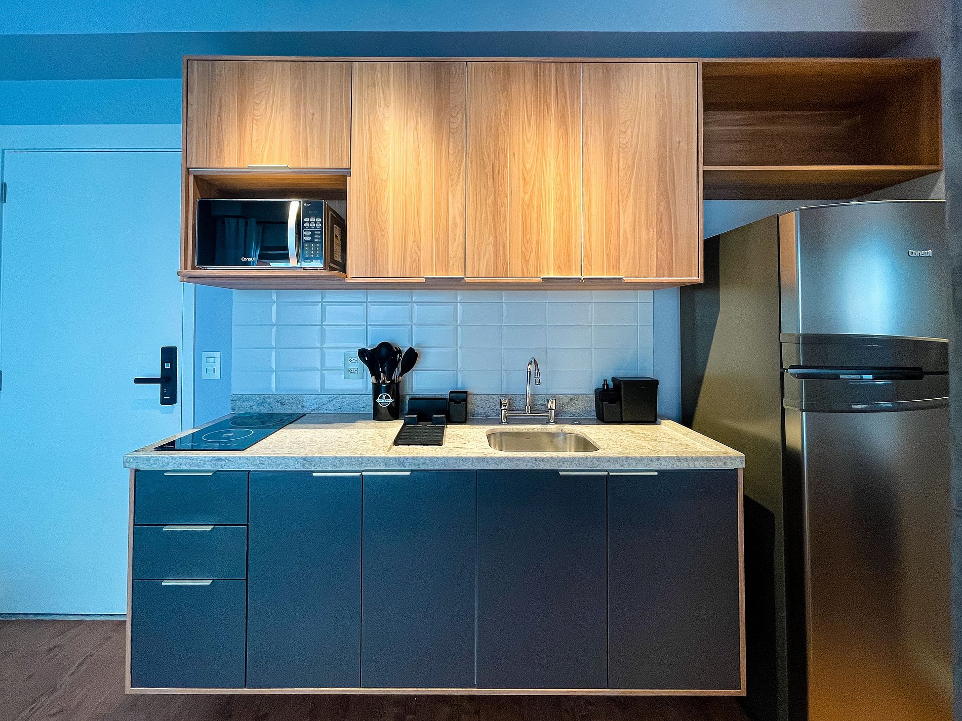 Está equipado con todos los utensilios básicos para hacer más cómoda tu estancia. Disfrute de una noche tranquila en nuestra cama súper acogedora y utilice la cocina completa para sus necesidades culinarias. Con una decoración contemporánea, el ambiente combina funcionalidad y estilo, haciéndolo ideal para estancias cortas y largas. Nuestro estudio cuenta con todo el apoyo que necesita para pasar unos días increíbles en Jardim Paulista, São Paulo, Av. Brigadeiro Luís Antônio 2867, una de las direcciones más nobles de São Paulo. Atención, nuestra canastilla incluye los siguientes elementos: Fundas de almohada, Fundas de almohada, Sábanas ajustables, Sábanas individuales, Cubrecamas, Toallas de baño y faciales y Mantas de microfibra Para artículos adicionales, como edredón o cambio de toallas, deberás consultar con el equipo para consultar disponibilidad y precios.