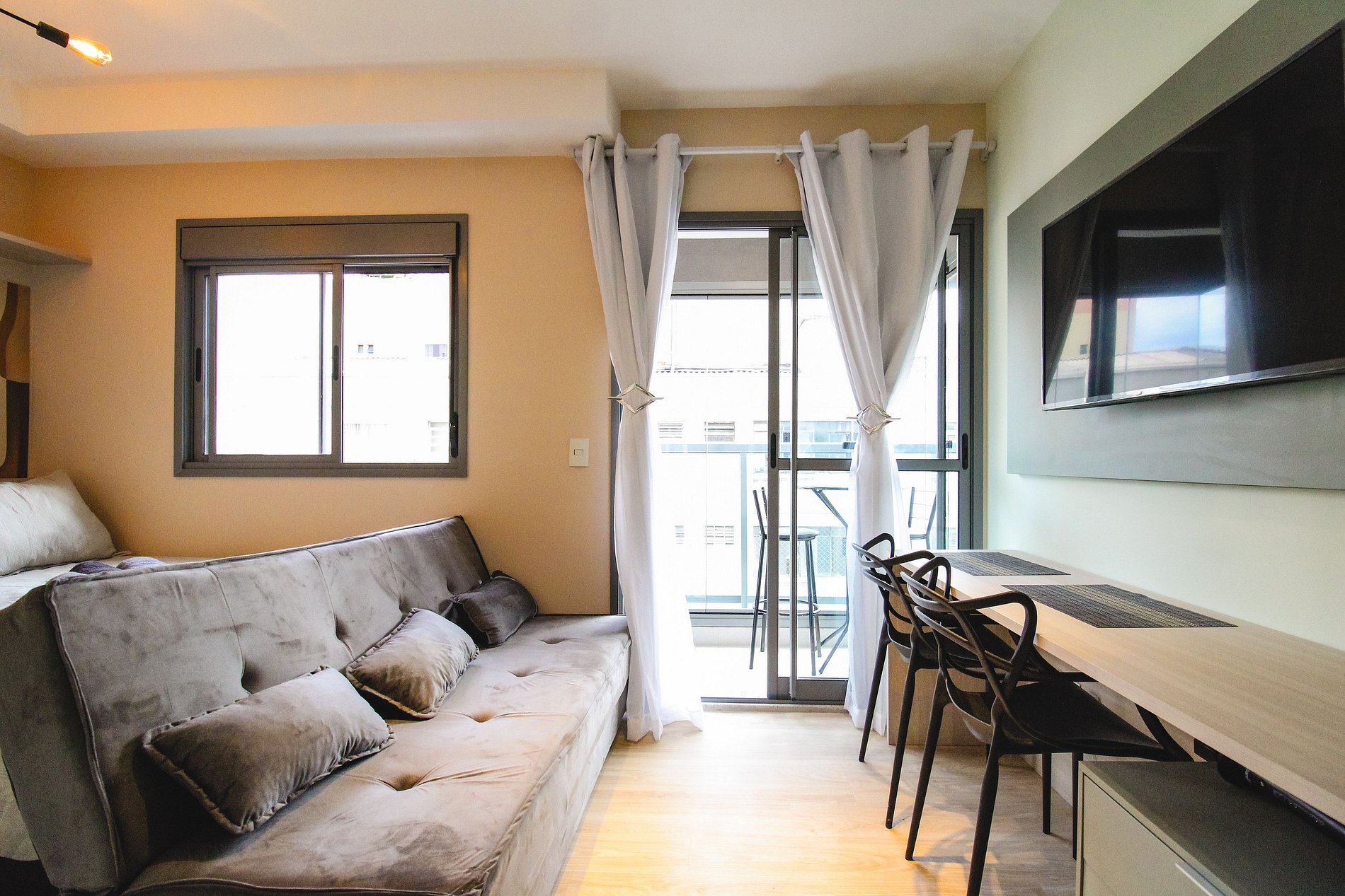 Está equipado con todos los utensilios esenciales para que tu estancia sea más cómoda. Disfruta de una noche tranquila en nuestra cama sumamente confortable y aprovecha la cocina completa para preparar tus comidas. La decoración contemporánea crea un ambiente que combina funcionalidad y estilo, ideal tanto para estancias cortas como largas. Nuestro estudio ofrece todo lo necesario para que vivas una experiencia inolvidable en Jardim Paulista, São Paulo, Av. Brigadeiro Luís Antônio 2867, una de las zonas más exclusivas de la ciudad. La canastilla incluye: fundas de almohada, sábanas ajustables, sábanas individuales, cubrecamas, toallas de baño y faciales, y mantas de microfibra. Para solicitar artículos adicionales, como edredón o cambio de toallas, consulta disponibilidad y valores con nuestro equipo.