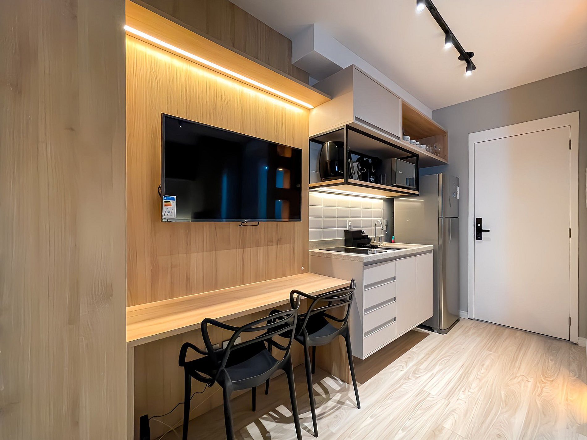 Está equipado con todos los utensilios necesarios para que tu estancia sea cómoda. Descansa plácidamente en nuestra cama muy confortable y aprovecha la cocina completa para preparar tus comidas. Con una decoración moderna, el ambiente ofrece funcionalidad y estilo, ideal tanto para estancias cortas como prolongadas. Nuestro estudio dispone de todo lo que necesitas para disfrutar de unos días increíbles en Jardim Paulista, São Paulo, en la Av. Brigadeiro Luís Antônio 2867, una de las zonas más exclusivas de la ciudad. La canasta de bienvenida incluye: fundas de almohada, sábanas ajustables, sábanas individuales, cubrecamas, toallas de baño y de manos, y mantas de microfibra. Para solicitar otros artículos, como edredones o recambio de toallas, será necesario contactar con el equipo para consultar disponibilidad y tarifas.