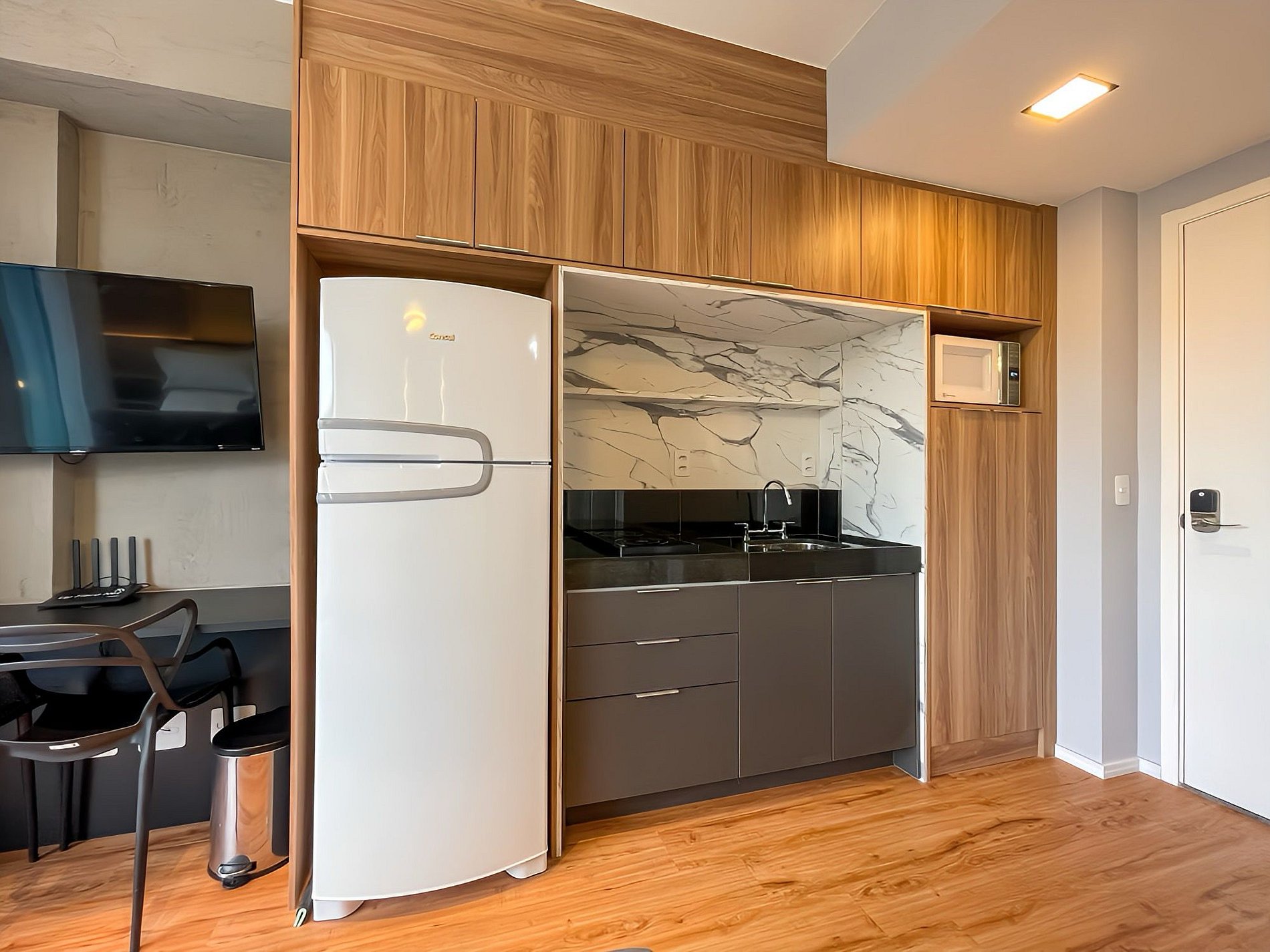 Situado en un condominio moderno, este cómodo estudio es ideal para hasta 3 personas. Ofrece una ubicación privilegiada y todo el confort necesario. Cuenta con acceso seguro mediante cerradura electrónica con clave y portería las 24 horas. Disfrute lo mejor de São Paulo con comodidad y seguridad.