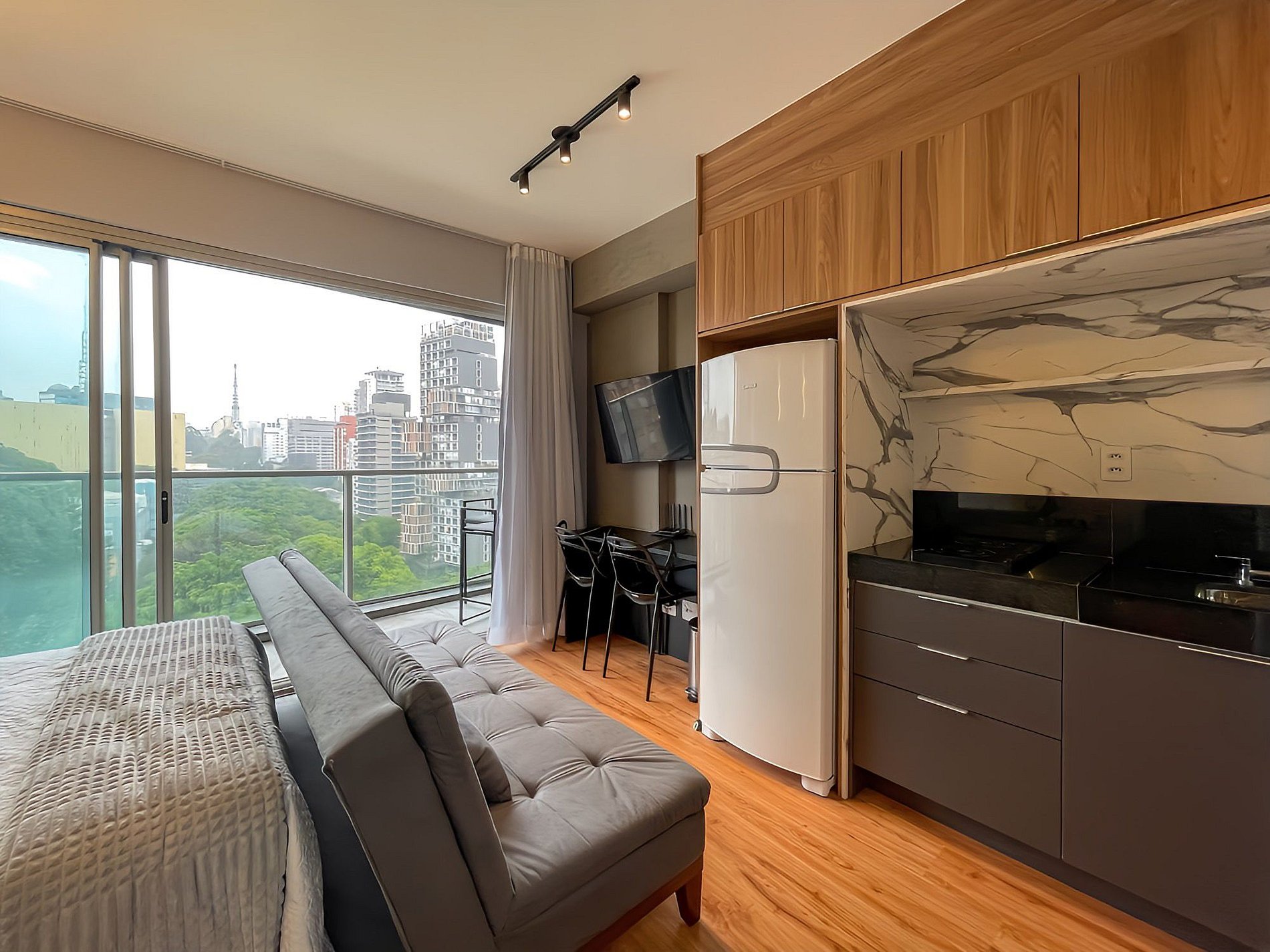 Con una decoración contemporánea, el ambiente ofrece funcionalidad y estilo, siendo ideal tanto para estancias cortas como largas. Nuestro estudio proporciona todo lo necesario para que vivas una experiencia increíble en Jardim Paulista, São Paulo, en la Avenida Rebouças 1006, una de las zonas más sofisticadas de la ciudad.