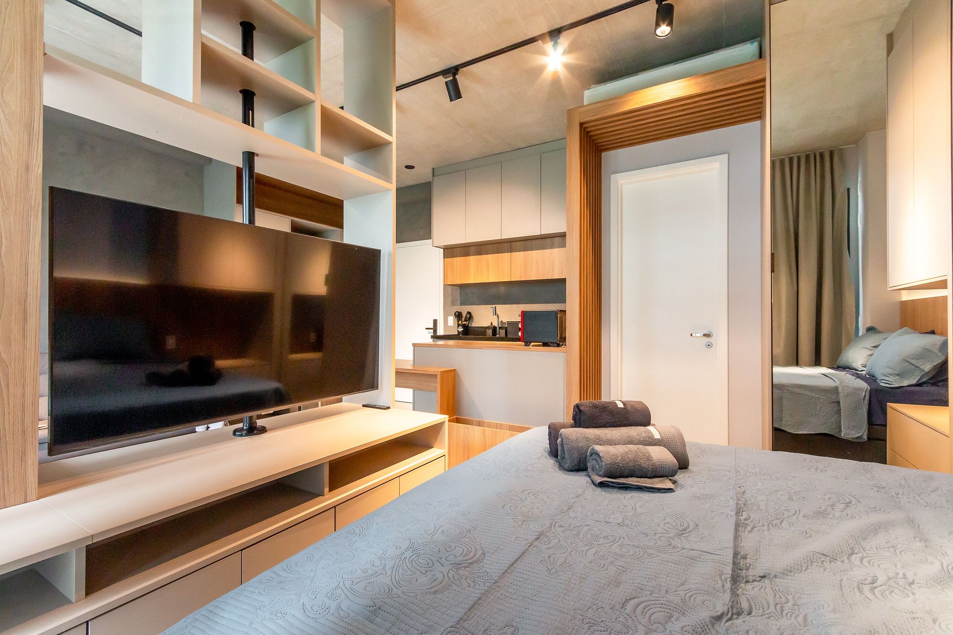 Con una decoración contemporánea, el ambiente combina funcionalidad y estilo, haciéndolo ideal para estancias cortas y largas. Nuestro estudio cuenta con todo el apoyo que necesita para pasar unos días increíbles en Vila Nova Conceição, SÃO PAULO, Rua chilon 184, una de las direcciones más nobles de São Paulo.