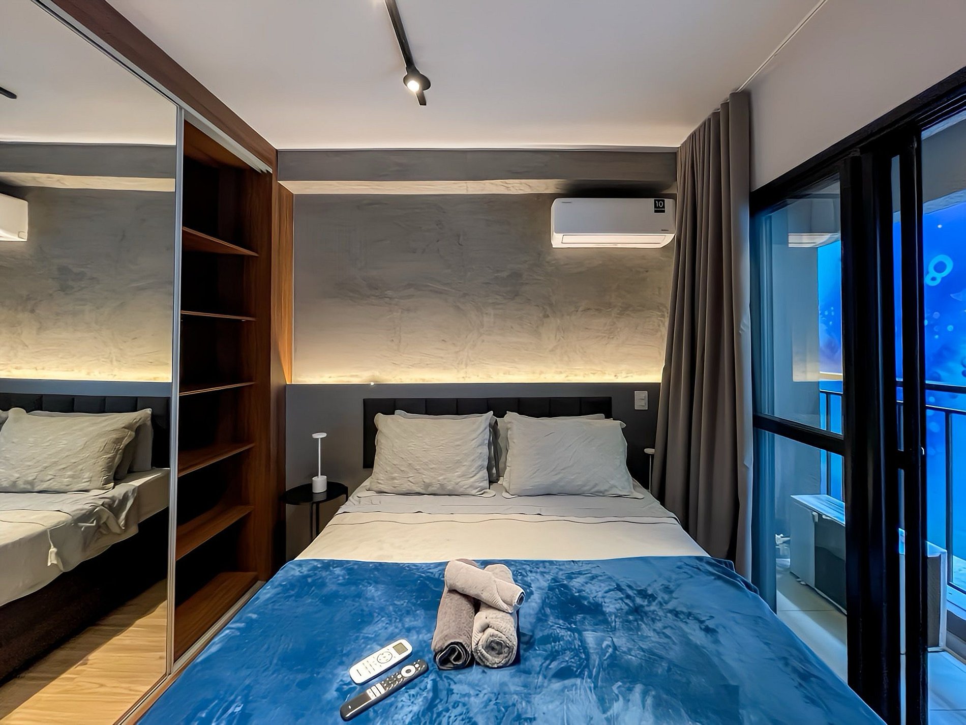 Acogedor y moderno, este apartamento de Think Home tiene capacidad para 3 personas. Equipado con aire acondicionado, ropa de cama completa, menaje básico y un encantador balcón, ofrece todo para una estancia confortable. A sólo 400 metros del metro Santa Cecília, el acceso a la piscina, gimnasio y otras instalaciones del condominio está abierto a los huéspedes.