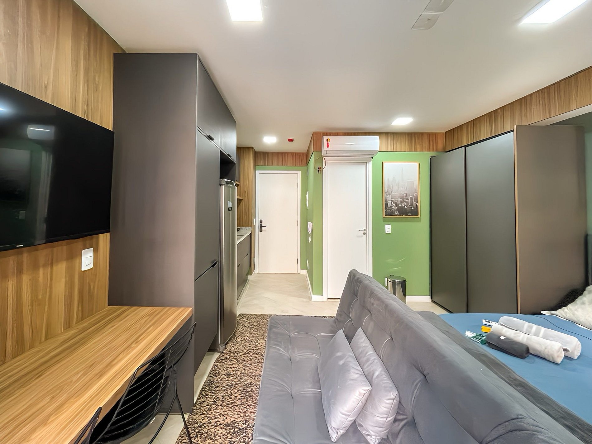 Acogedor estudio, reformado y equipado con cocineta, lencería completa, smart TV y excelente conexión wifi para home office. Excelente opción para 3 personas.