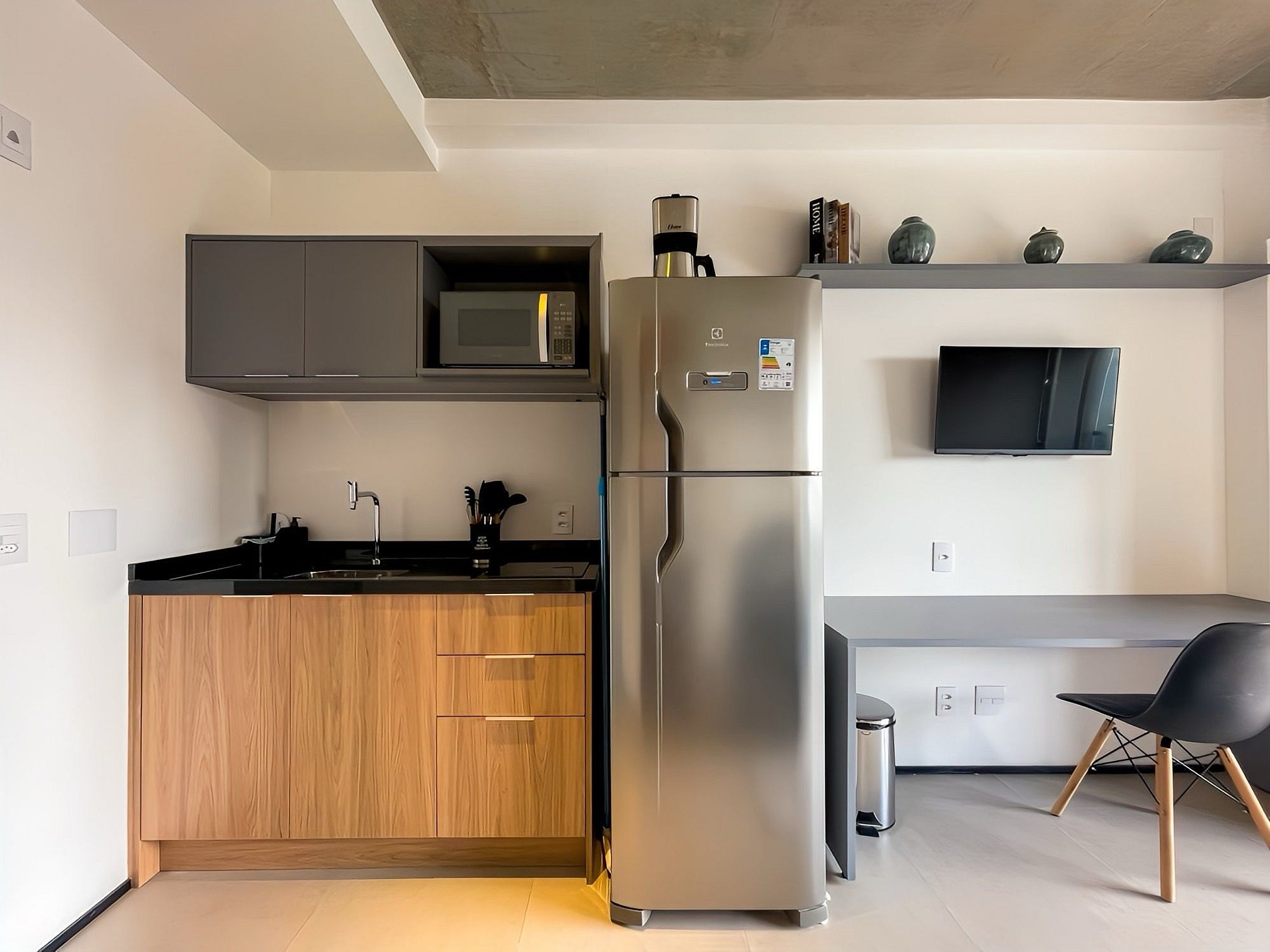 Con una decoración contemporánea, el ambiente combina funcionalidad y estilo, haciéndolo ideal para estancias cortas y largas. Nuestro estudio cuenta con todo el apoyo que necesita para pasar unos días increíbles en Paraíso, SÃO PAULO, Av. Bernardino de Campos 1340, una de las direcciones más nobles de São Paulo.