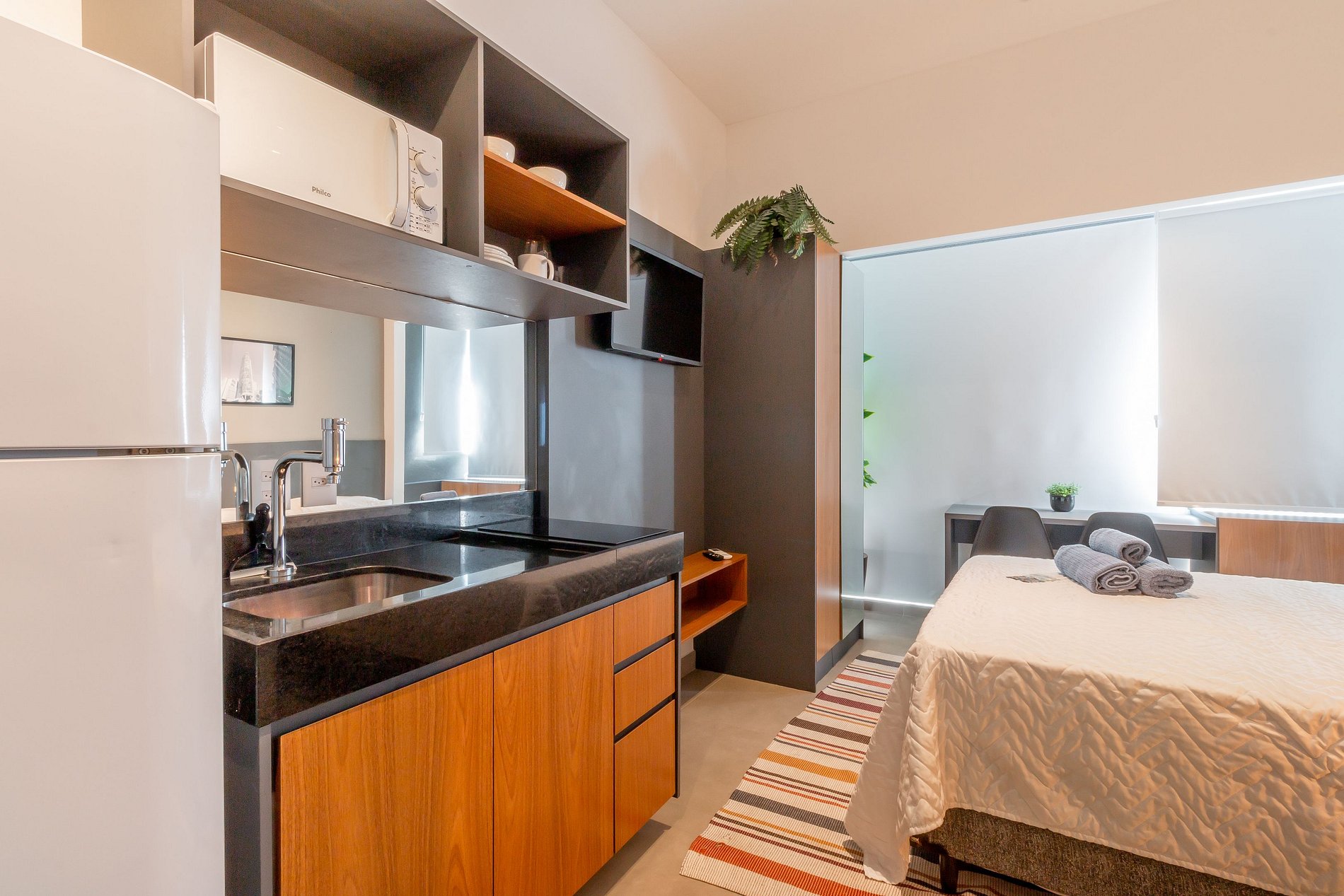 Con una decoración contemporánea, el ambiente combina funcionalidad y estilo, haciéndolo ideal para estancias cortas y largas. Nuestro estudio cuenta con todo el apoyo que necesita para pasar unos días increíbles en PINHEIROS, SÃO PAULO, Rua Oscar Freire 137, una de las direcciones más nobles de São Paulo.