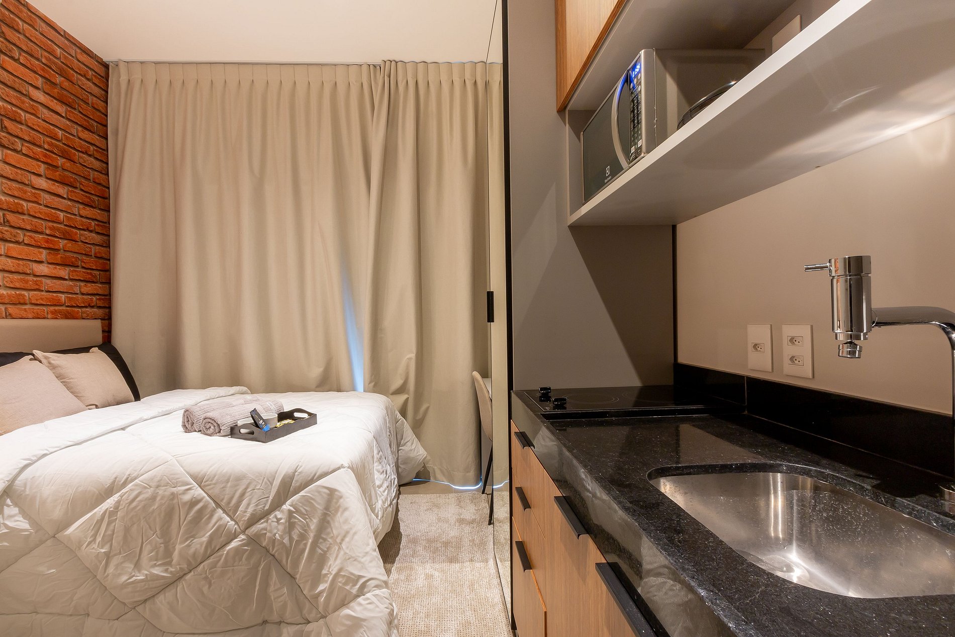 Con una decoración contemporánea, el ambiente combina funcionalidad y estilo, haciéndolo ideal para estancias cortas y largas. Nuestro estudio cuenta con todo el apoyo que necesita para pasar unos días increíbles en PINHEIROS, SÃO PAULO, Rua Oscar Freire 137, una de las direcciones más nobles de São Paulo.