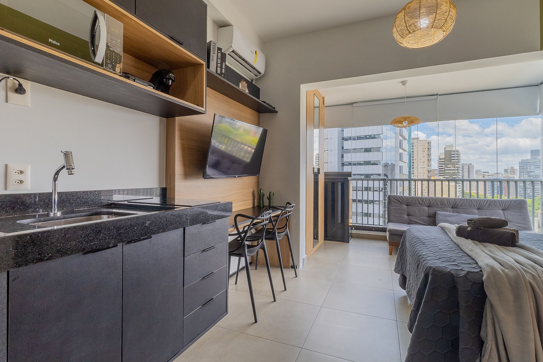 Con una decoración contemporánea, el ambiente combina funcionalidad y estilo, siendo ideal tanto para estancias cortas como largas. Nuestro estudio ofrece todo el apoyo necesario para que vivas días inolvidables en Liberdade, São Paulo, en la Rua Doutor João Morais 35, una de las zonas más exclusivas de la ciudad.
