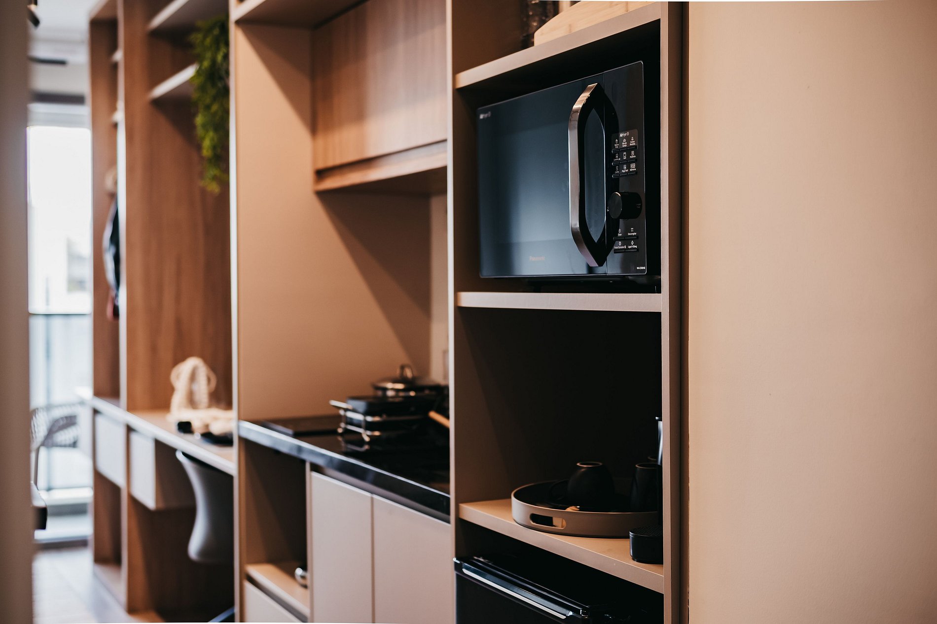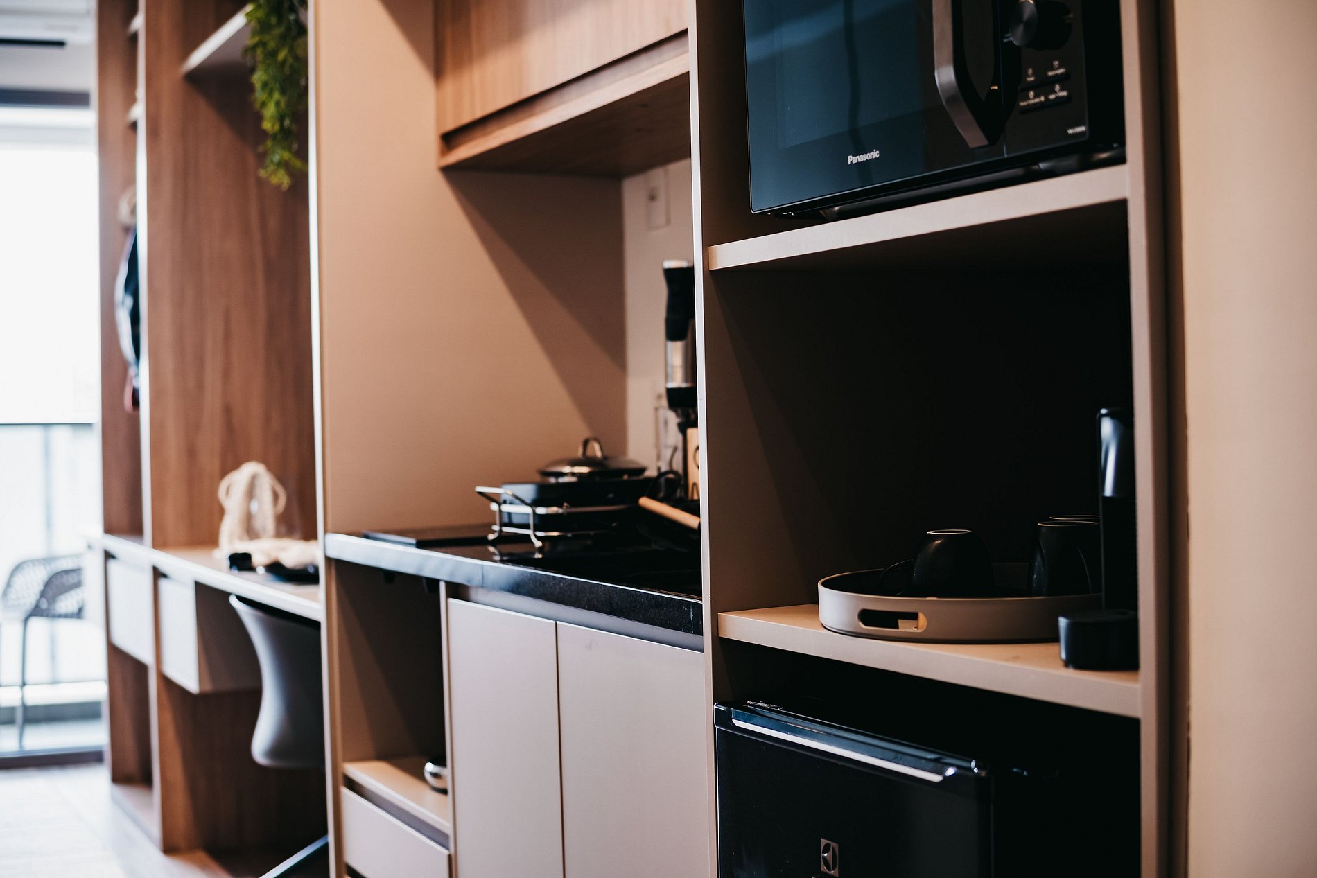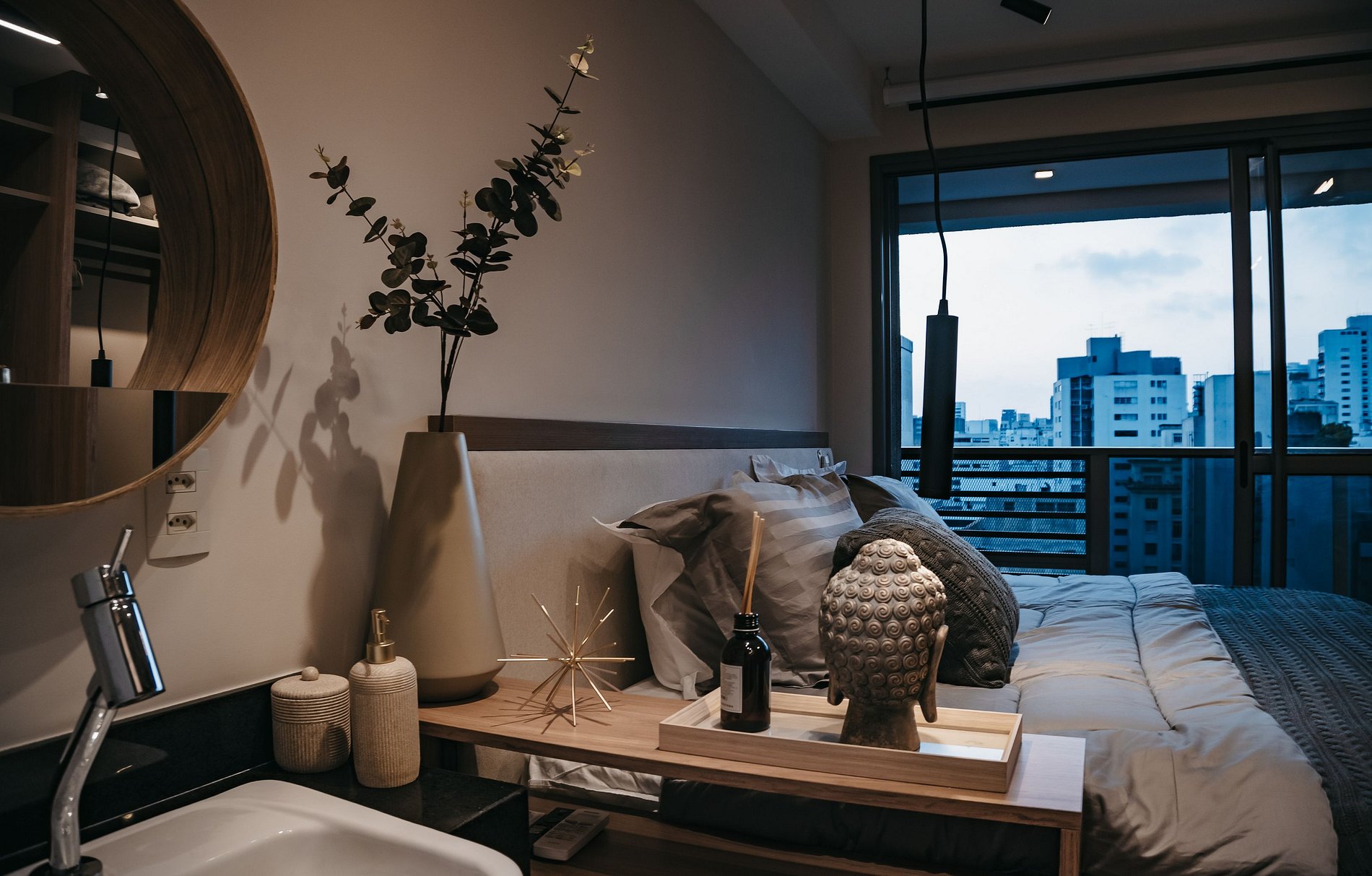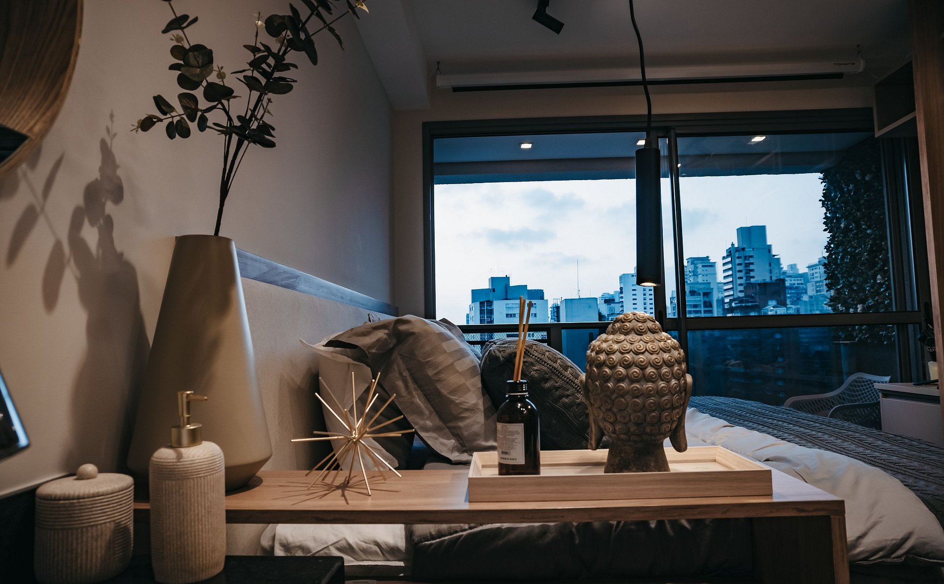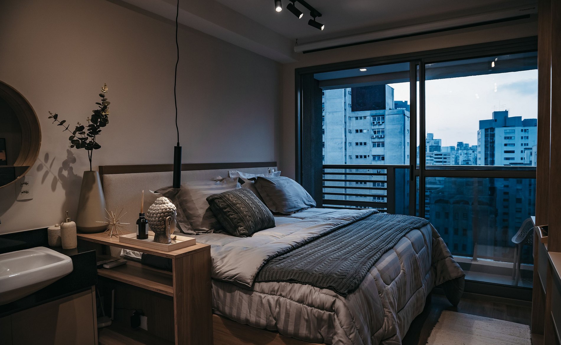Apartamento moderno, cómodo y cuidadosamente decorado para ofrecer una experiencia de alojamiento excepcional. El espacio cuenta con una cama confortable, ropa de cama incluida, aire acondicionado, abundante luz natural y un balcón privado con vista a la ciudad. Dispone de una cocina compacta equipada con minibar y microondas, ideal para preparar comidas sencillas, además de un área funcional para trabajar o estudiar. Tranquilo, práctico y acogedor, perfecto tanto para viajes de trabajo como de placer, en una ubicación estratégica de la ciudad.