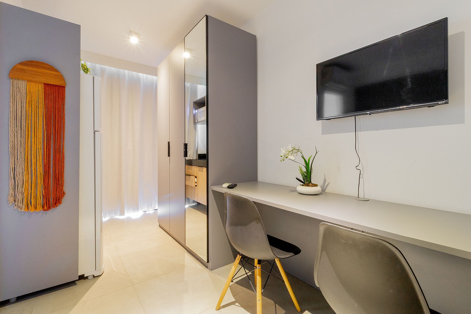 Com uma decoração contemporânea, o ambiente une funcionalidade e estilo, sendo perfeito tanto para estadias curtas quanto longas. Nosso Studio oferece todo o suporte necessário para você desfrutar de dias incríveis em Indianópolis, São Paulo, na Avenida dos Imarés, 298, um dos endereços mais valorizados da cidade.