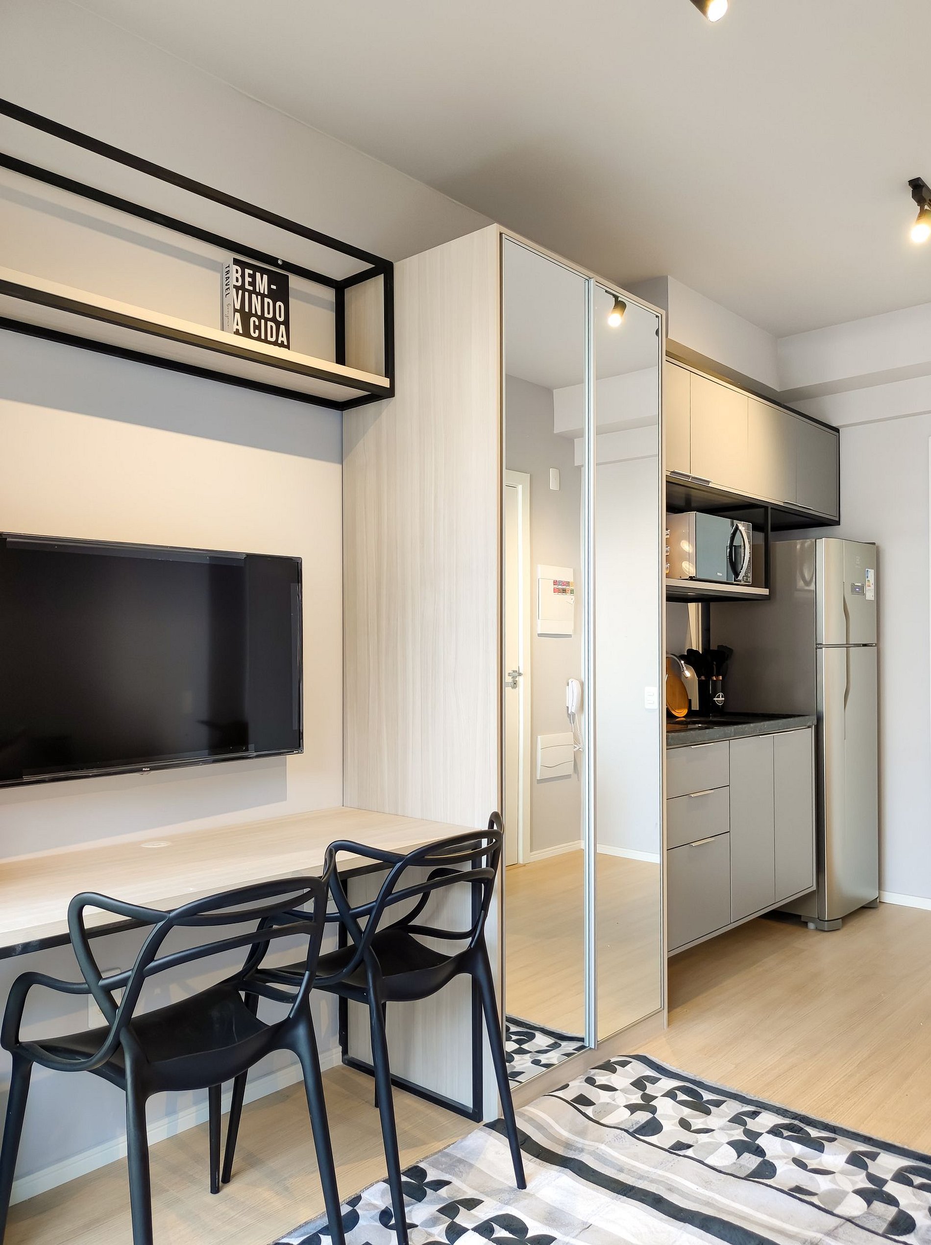 Um studio projetado para proporcionar conforto e praticidade em cada detalhe. Com decoração contemporânea, o ambiente é iluminado e acolhedor, ideal para relaxar depois de um dia cheio de descobertas pela cidade.