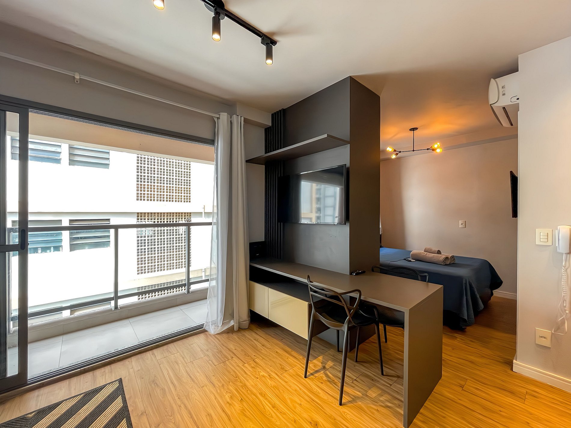 Desfrute do conforto e estilo deste estúdio novinho no Parkside, nos Jardins Paulista. Completo com 1 dormitório, sala charmosa com sofá-cama, cozinha moderna, varanda para relaxar, Wi-Fi rápido e ar condicionado. Além disso, o prédio oferece excelentes áreas comuns, como piscina e espaço de coworking. Localizado a apenas 4 minutos da Avenida Paulista, este é o lugar perfeito para aproveitar o melhor de São Paulo. Não perca essa oportunidade! Entre em contato e faça sua reserva.