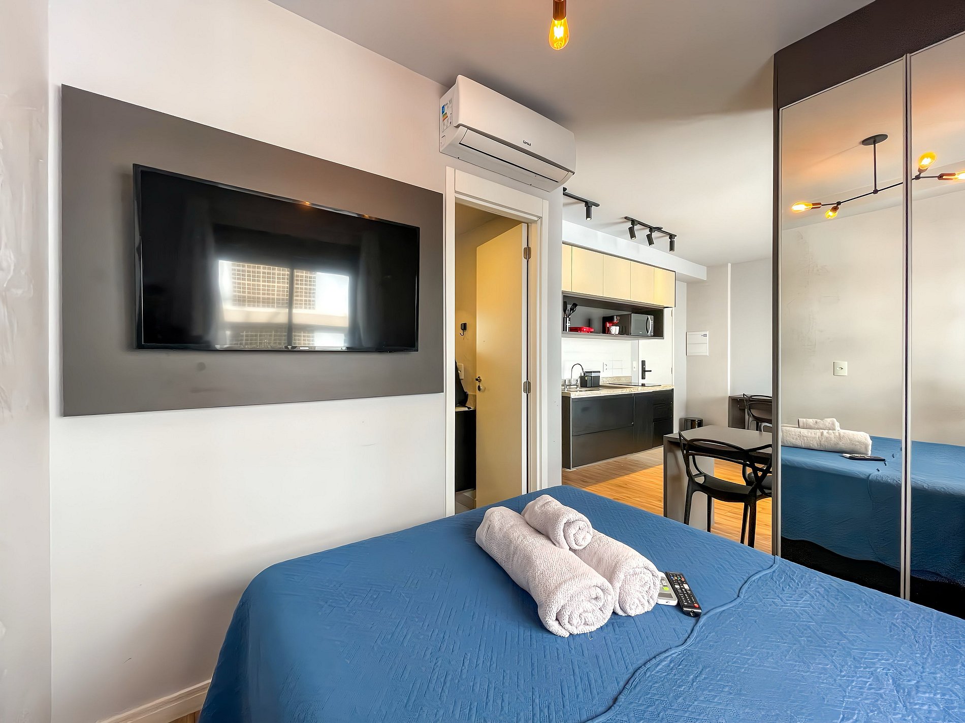É equipado com todos os utensílios básicos para tornar sua estadia mais confortável. Desfrute de uma noite tranquila em nossa cama super aconchegante, e utilize a cozinha completa para suas necessidades culinárias. Com uma decoração contemporânea, o ambiente combina funcionalidade e estilo sendo ideal para estadias curtas e longas, nosso Studio possui todo suporte que você precisa para passar dias incríveis na Jardim Paulista, São Paulo, Av. Brigadeiro Luís Antônio 2867 um dos endereços mais nobres de São Paulo. Atenção, nosso enxoval conta com os seguintes itens : Fronhas , Capa de travesseiro, Lençol de elástico, Lençol simples, Cobre leito, Toalhas de banho, de rosto e Mantas Microfibras Para itens adicionais, como edredom ou troca de toalhas, necessário consultar a equipe para conferir disponibilidade e valores.