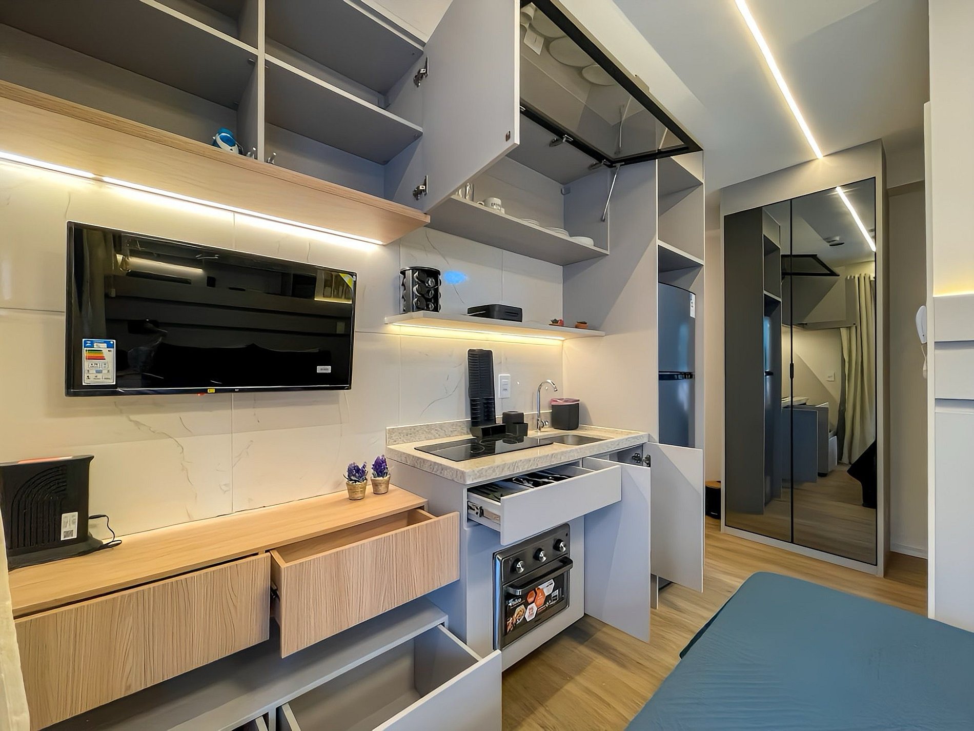 Com uma decoração contemporânea, o ambiente une funcionalidade e estilo, sendo ideal tanto para estadias curtas quanto longas. Nosso Studio oferece toda a estrutura necessária para você aproveitar dias incríveis no bairro Paraíso, em São Paulo, na Rua Cubatão, 81, uma das regiões mais valorizadas da cidade.