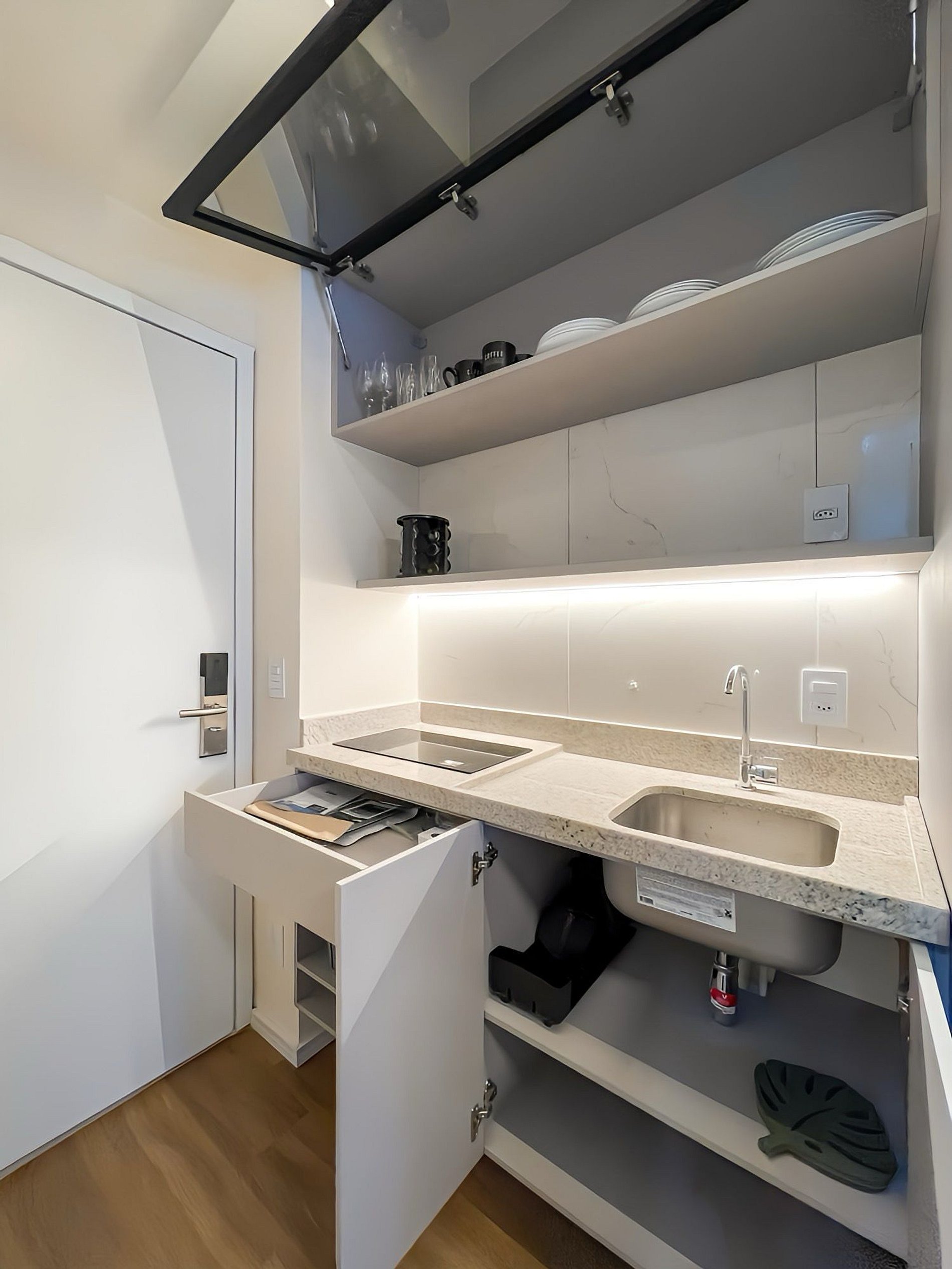 Com uma decoração contemporânea, o ambiente une funcionalidade e estilo, sendo ideal tanto para estadias curtas quanto longas. Nosso Studio oferece todo o suporte necessário para você aproveitar dias incríveis no Paraíso, em São Paulo, na Rua Cubatão, 81, um dos endereços mais nobres da cidade.