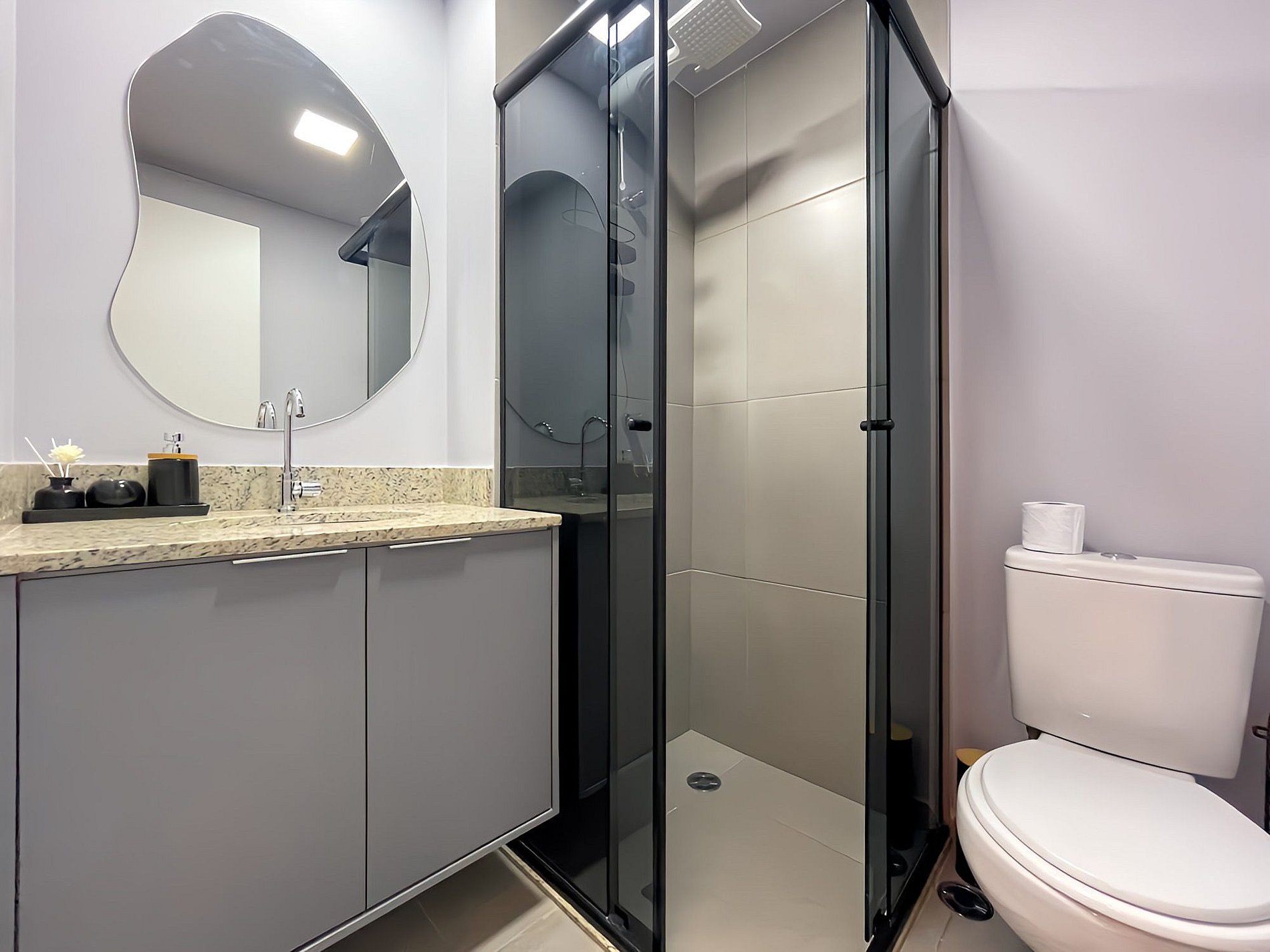 O Think Home Higienópolis proporciona uma experiência completa de conforto, praticidade e lazer. O condomínio oferece piscina, academia, solário, espaço de coworking, bar, lounge com TV, jardim e área gourmet, todos disponíveis durante sua estadia.