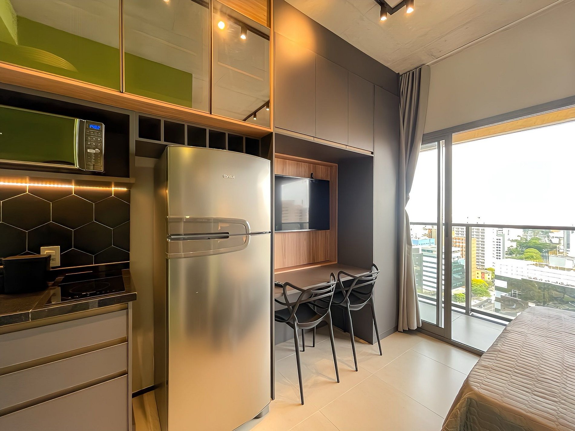 Com uma decoração contemporânea, o ambiente combina funcionalidade e estilo sendo ideal para estadias curtas e longas, nosso Studio possui todo suporte que você precisa para passar dias incríveis na Paraíso, SÃO PAULO, Av. Bernardino de Campos 1340 um dos endereços mais nobres de São Paulo.