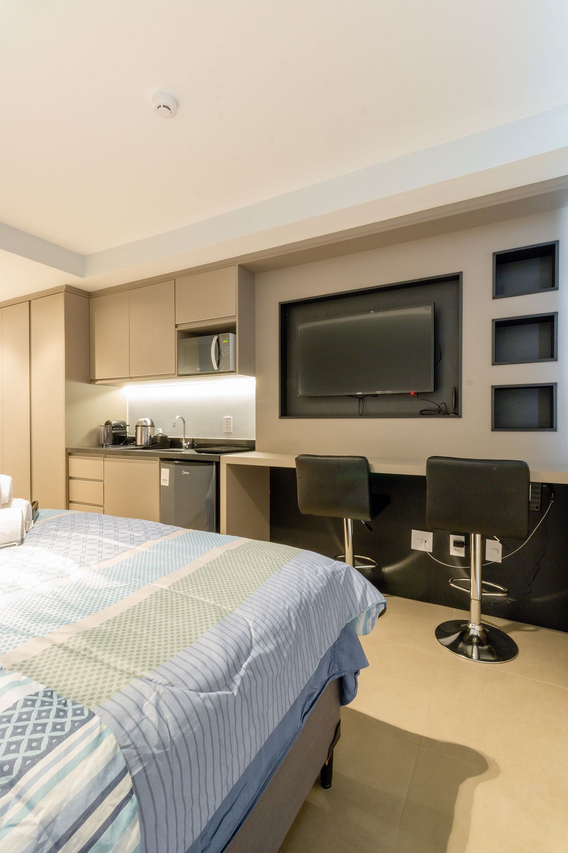 Com uma decoração contemporânea, o ambiente combina funcionalidade e estilo sendo ideal para estadias curtas e longas, nosso Studio possui todo suporte que você precisa para passar dias incríveis na Consolação, SÃO PAULO, Rua Bela Cintra 237 um dos endereços mais nobres de São Paulo.