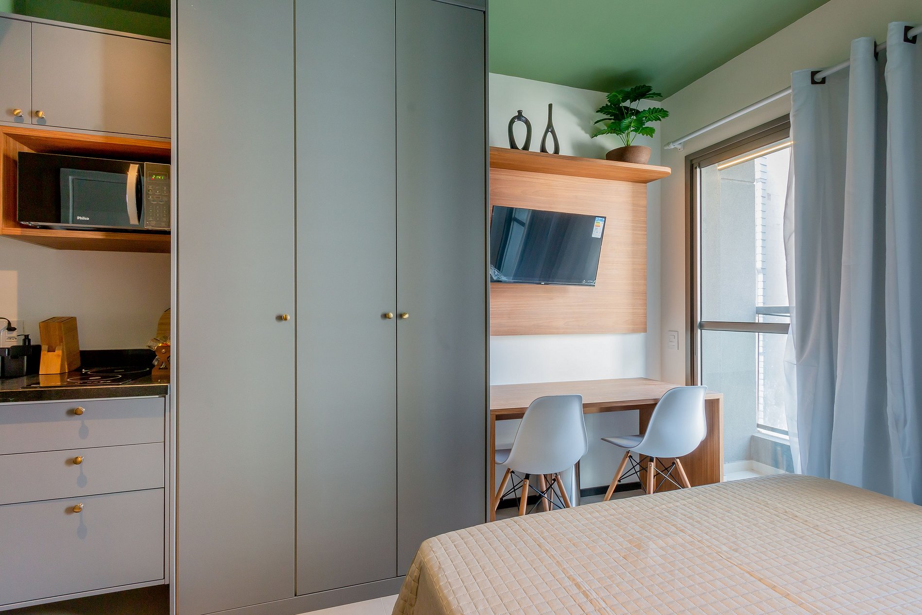 Com uma decoração contemporânea, o ambiente combina funcionalidade e estilo sendo ideal para estadias curtas e longas, nosso Studio possui todo suporte que você precisa para passar dias incríveis na Consolação, SÃO PAULO, R. da Consolação 297 um dos endereços mais nobres de São Paulo.