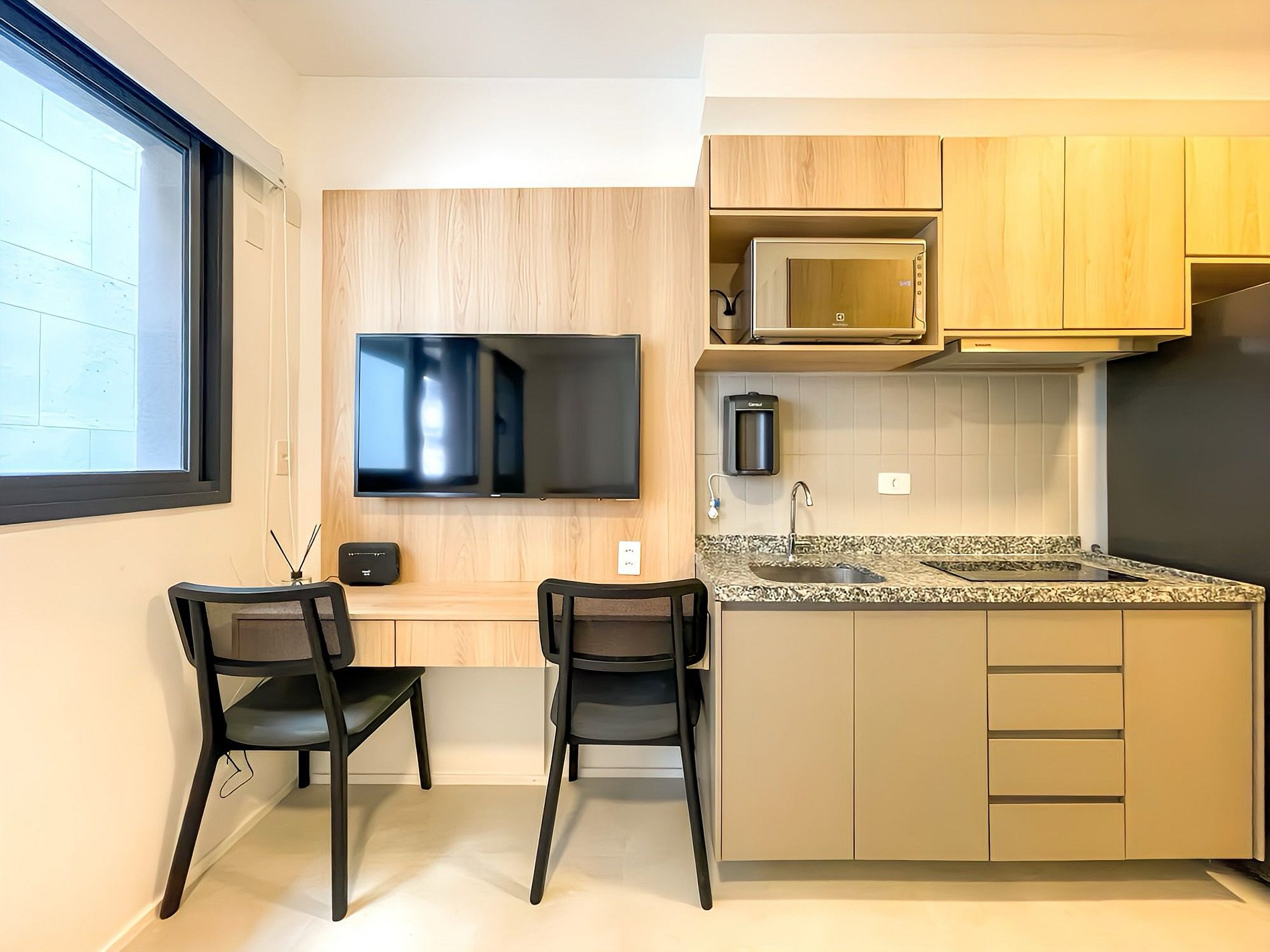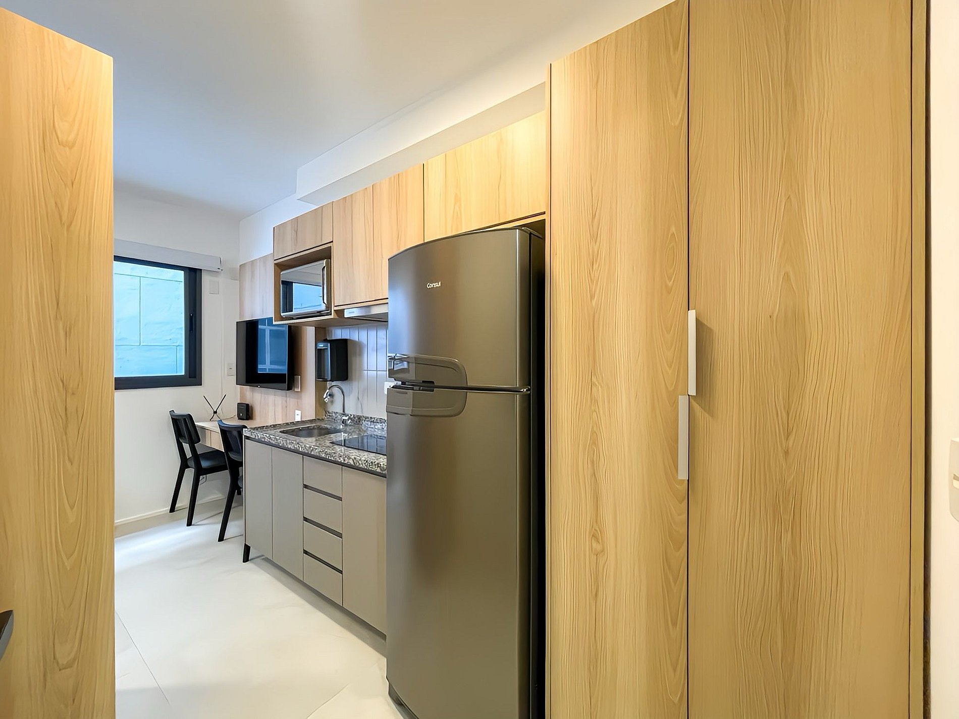 O espaço conta com todos os utensílios básicos para tornar sua estadia mais confortável. Aproveite uma noite tranquila em nossa cama super aconchegante e utilize a cozinha completa para preparar suas refeições. O ambiente, com decoração contemporânea, une funcionalidade e estilo, sendo ideal tanto para estadias curtas quanto longas. Nosso studio oferece todo o suporte necessário para que você viva dias incríveis na Consolação, em São Paulo, na Rua da Consolação, 2104, uma das regiões mais valorizadas da cidade. Nosso enxoval inclui fronhas, capas de travesseiro, lençol com elástico, lençol simples, cobre-leito, toalhas de banho e de rosto, além de mantas de microfibra. Para itens adicionais, como edredom ou troca de toalhas, é necessário consultar nossa equipe para verificar disponibilidade e valores.