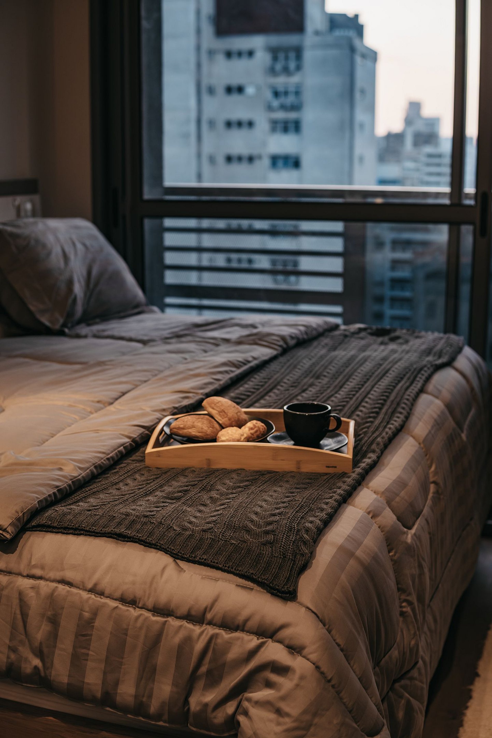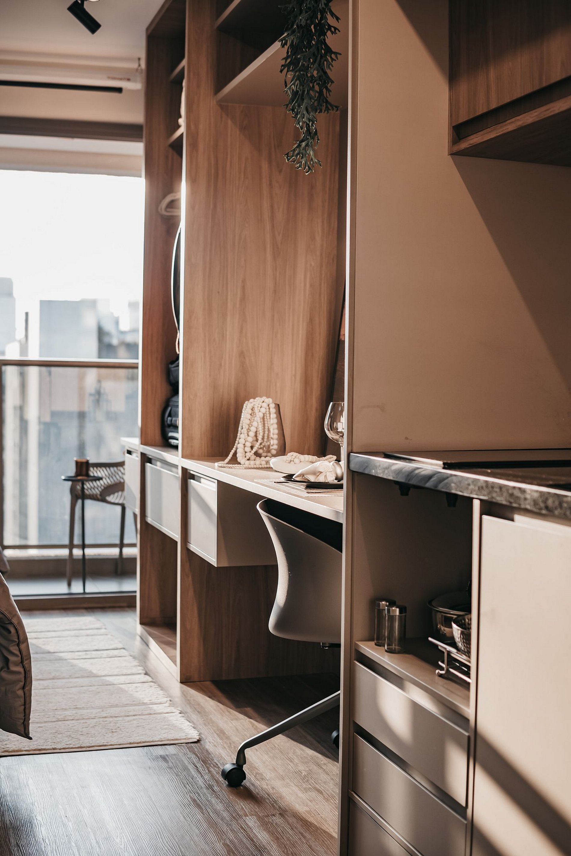 Apartamento moderno e aconchegante, decorado com cuidado para oferecer máximo conforto. Dispõe de cama com enxoval completo, ótima iluminação natural, varanda com vista para a cidade e ambiente tranquilo. Cozinha compacta equipada com frigobar e micro-ondas, além de espaço funcional para home office. Ideal para estadias curtas ou longas, a trabalho ou lazer, em localização estratégica.