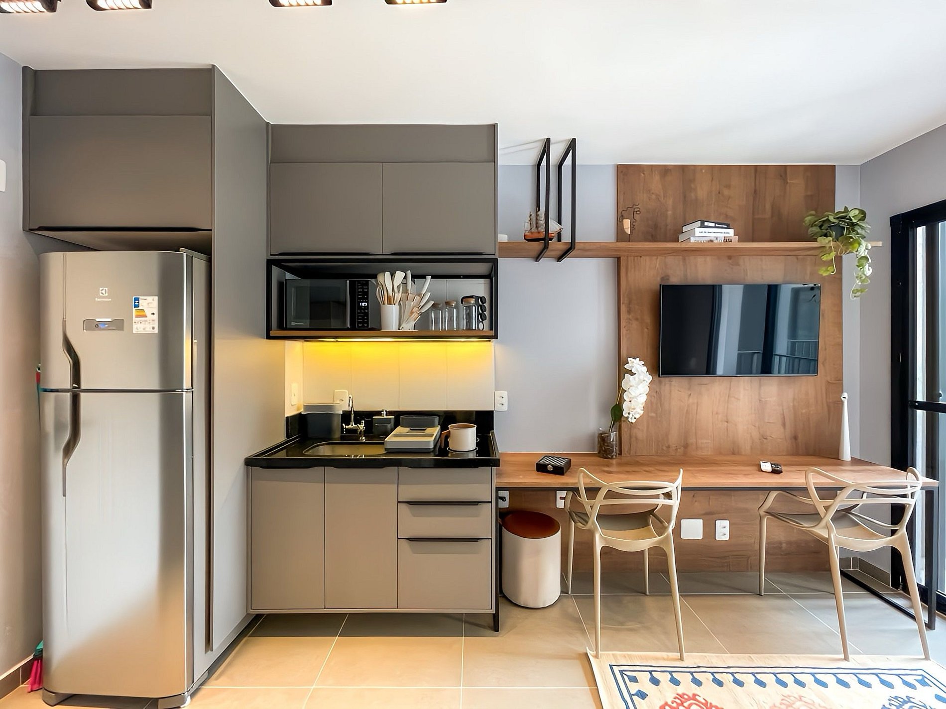 Com uma decoração contemporânea, o ambiente alia funcionalidade e estilo, sendo perfeito tanto para estadias curtas quanto longas. Nosso Studio oferece todo o suporte necessário para que você viva dias incríveis na Vila Olímpia, São Paulo, na Rua Alvorada, 616, um dos endereços mais valorizados da cidade.