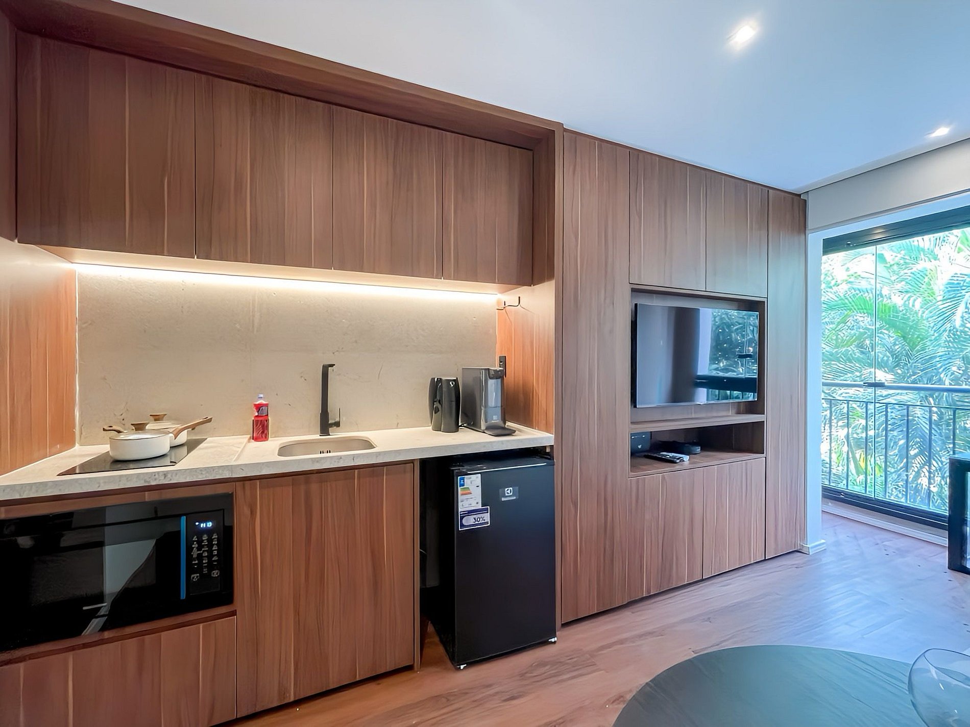 Com uma decoração contemporânea, o ambiente combina funcionalidade e estilo sendo ideal para estadias curtas e longas, nosso Studio possui todo suporte que você precisa para passar dias incríveis em Pinheiros, São Paulo, Rua Cardeal Arcoverde 231 um dos endereços mais nobres de São Paulo.