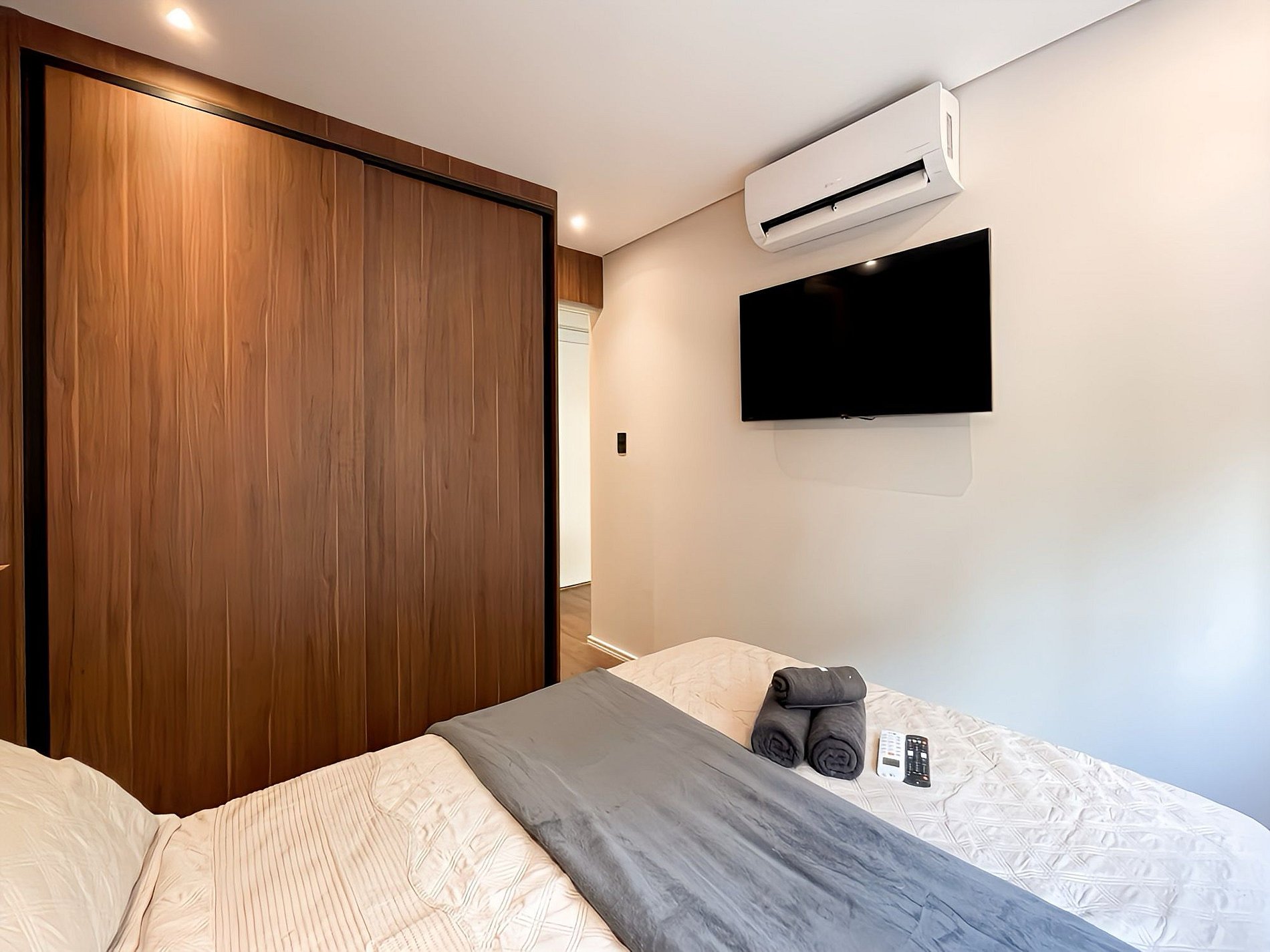 Acomodação moderna no coração de Pinheiros, ideal para até 3 hóspedes. A unidade oferece cama de casal confortável e sofá-cama, perfeita para viagens a trabalho ou lazer. Conta com Wi-Fi, Smart TV, cozinha equipada com utensílios básicos e enxoval completo. Localização privilegiada, a poucos passos do metrô Faria Lima e do Hospital das