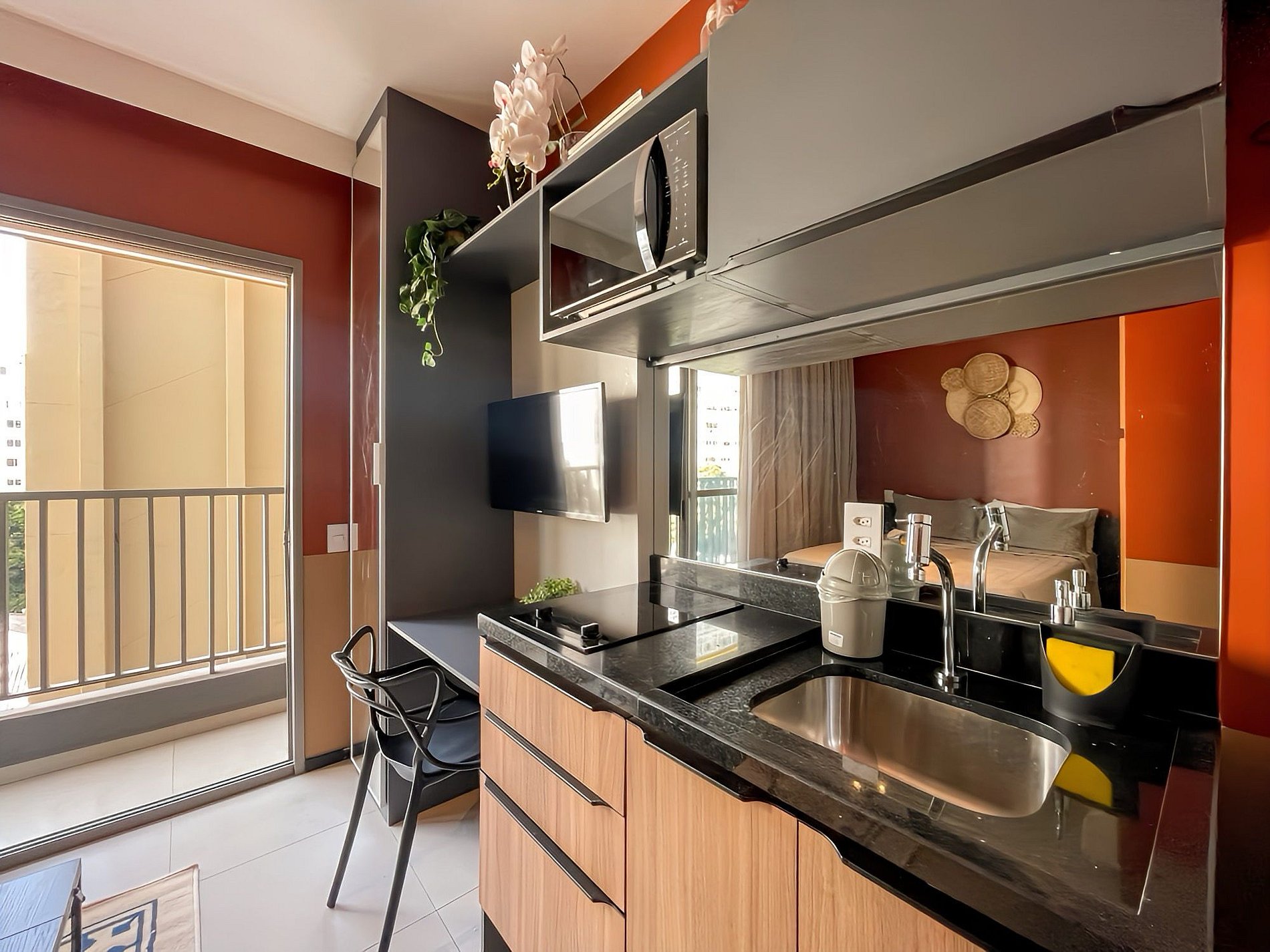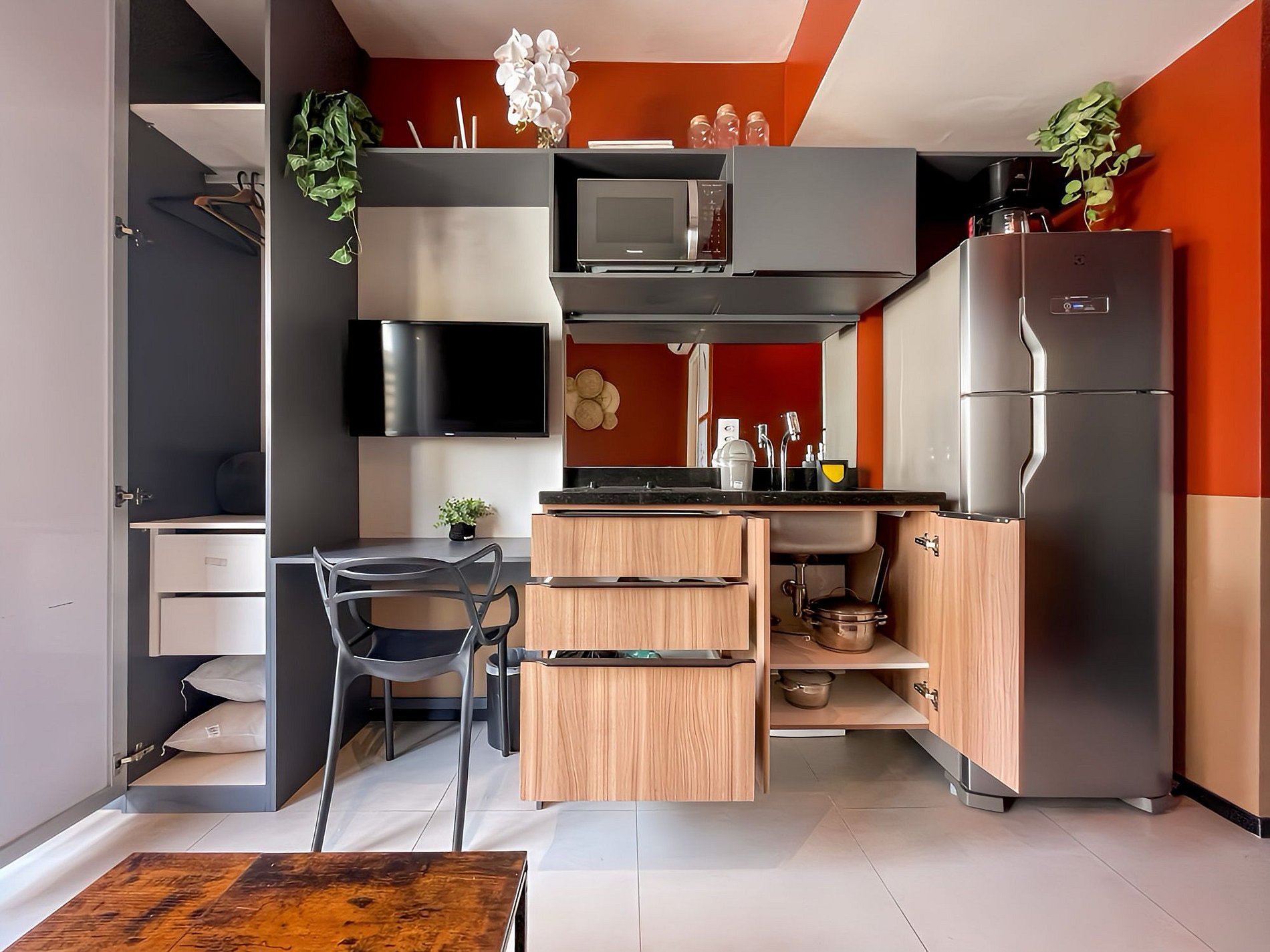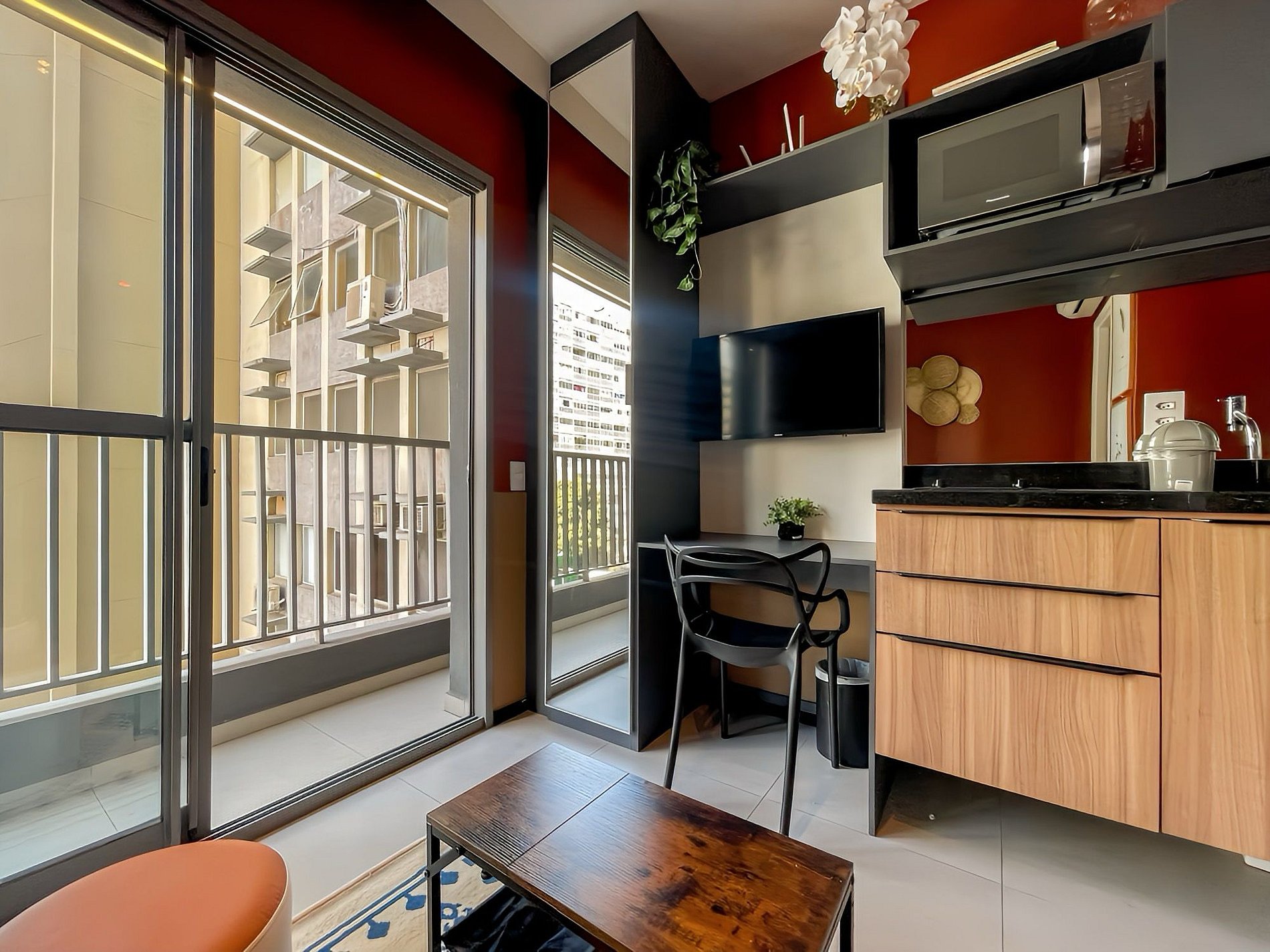 Com uma decoração contemporânea, o ambiente combina funcionalidade e estilo sendo ideal para estadias curtas e longas, nosso Studio possui todo suporte que você precisa para passar dias incríveis na Consolação, SÃO PAULO, R. da Consolação 297 um dos endereços mais nobres de São Paulo.