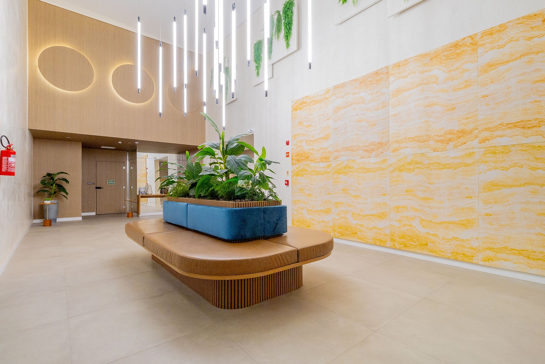 Conta com academia equipada, lavanderia compartilhada, piscina com vista panorâmica, salão de festas, espaço gourmet, coworking e rooftop incrível para curtir o pôr do sol da cidade.